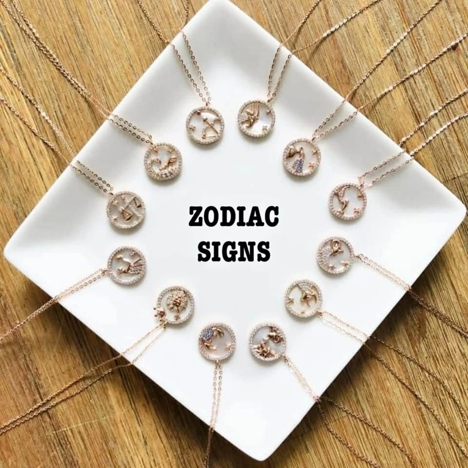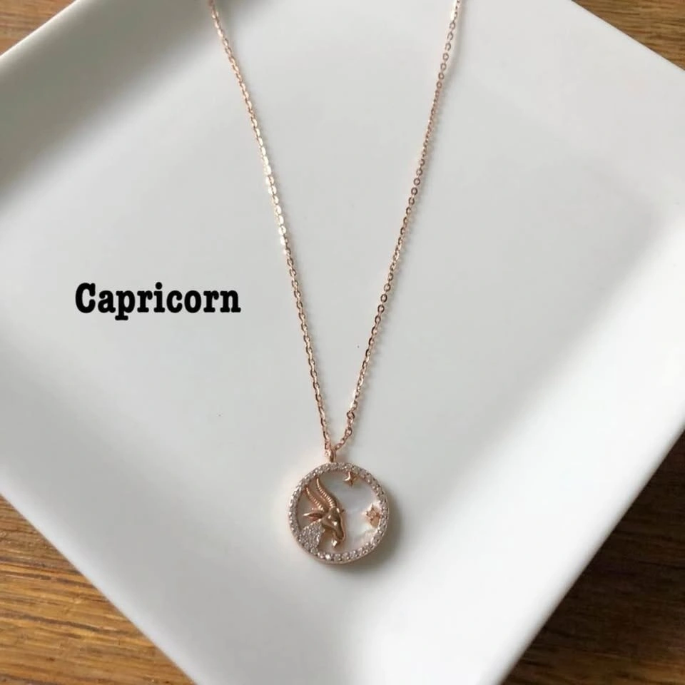 S925 Rose Gold Dainty Zodiac Pendant Necklace
