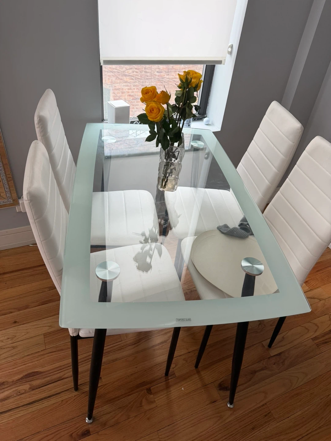 Glass Top Dining Table with 4 Chairs