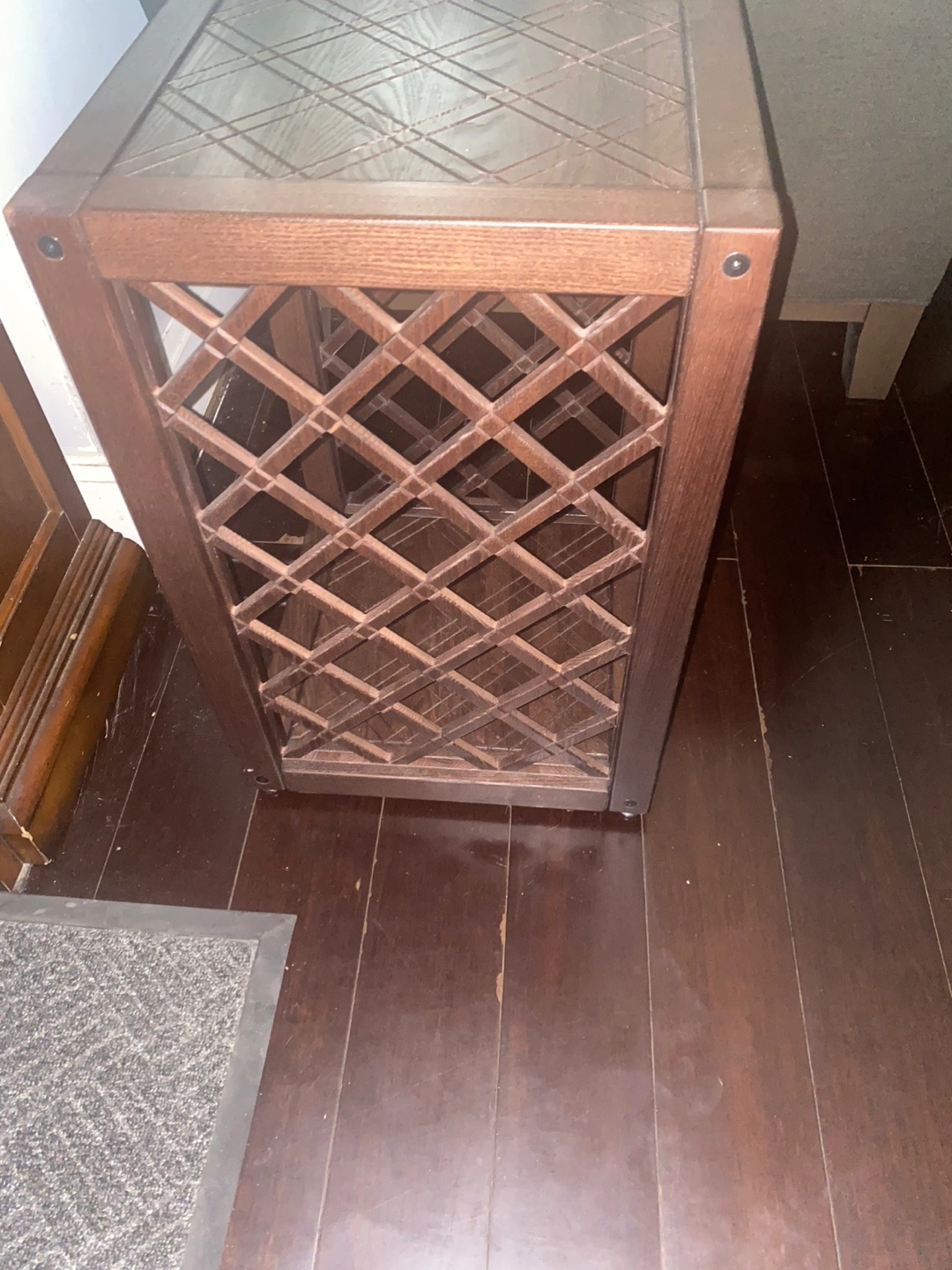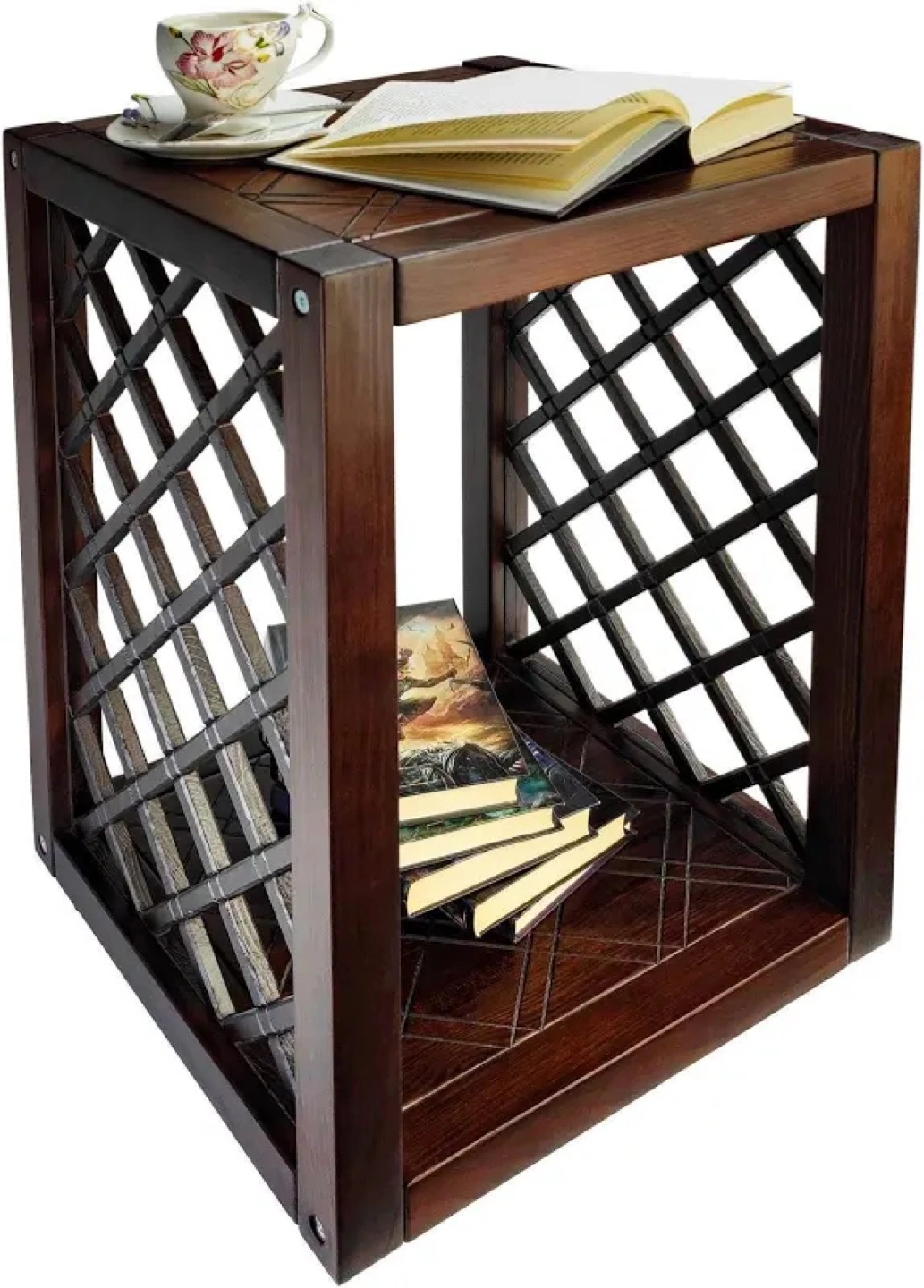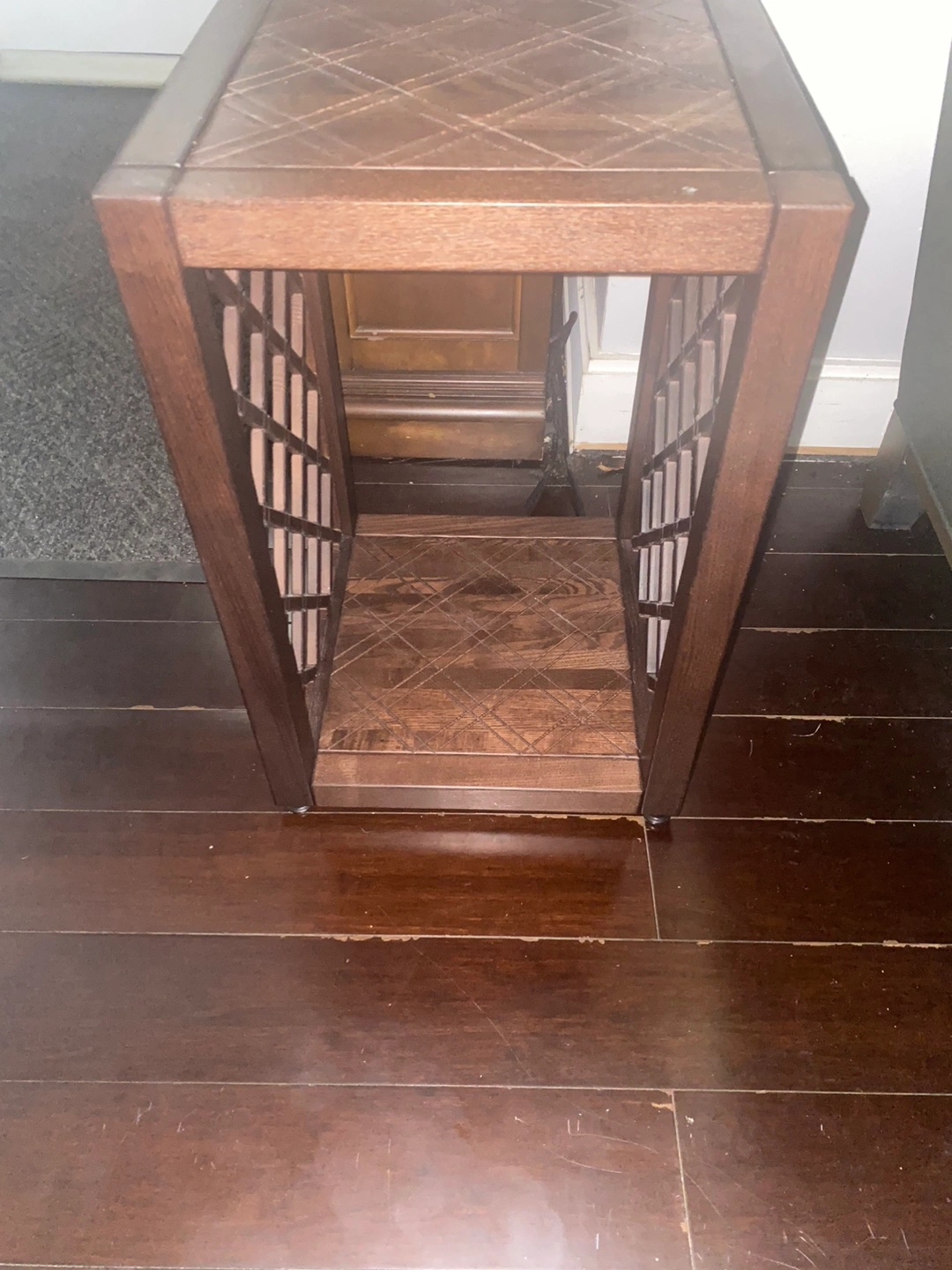 Brown wooden Rustic End Table with lattice design