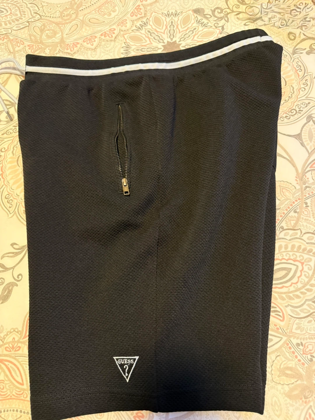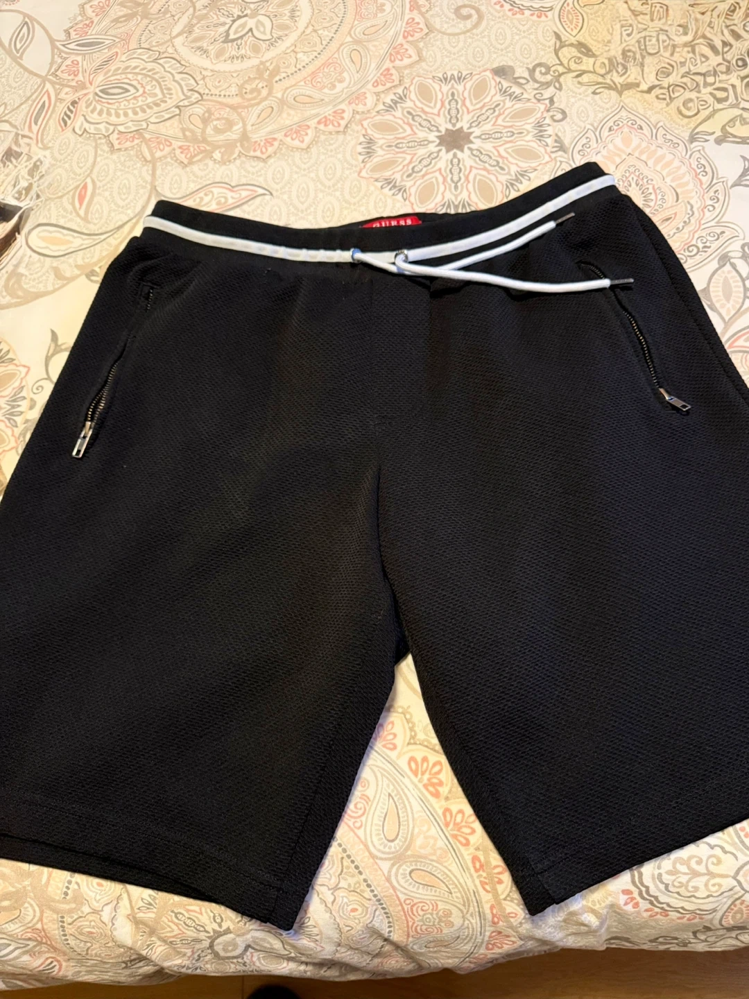 Guess Los Angeles black textured shorts. Features a drawstring waist and zippered pockets. Size is L. Mint condition barely worn.