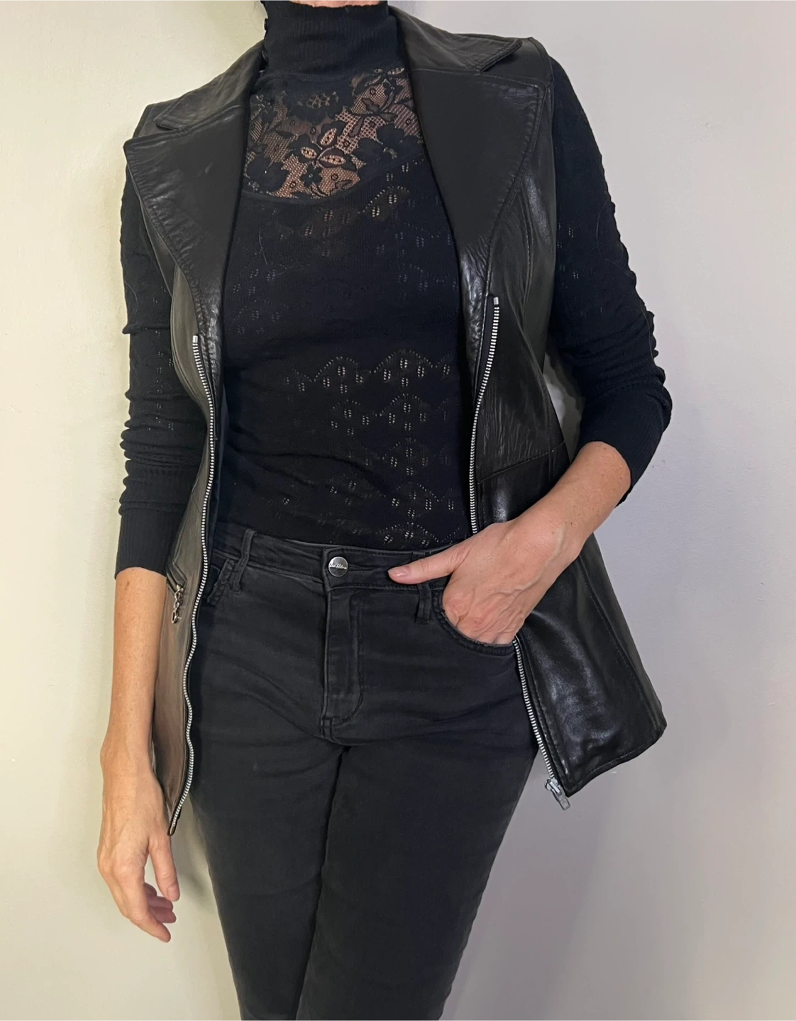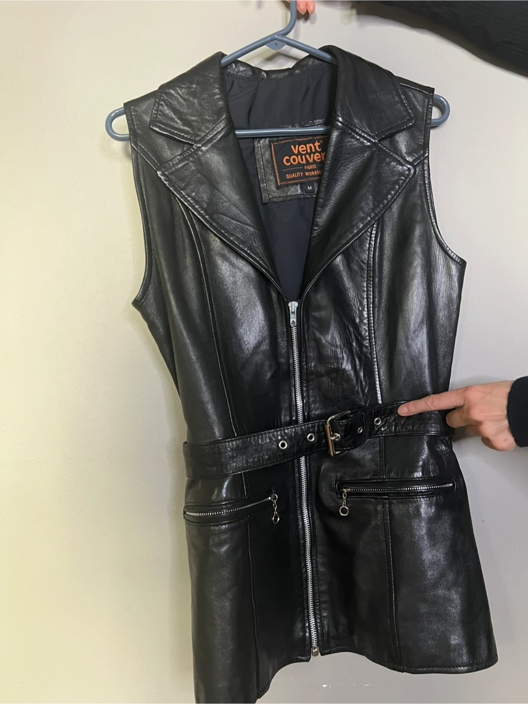 Buy & SellVent Couvert Black Leather Vest Size MVent Couvert Black Leather Vest Size M$119Vent Couvert Paris black leather vest. It's a size medium with a belted waist and zippered pockets. This vest has a unique style!BrandVent CouvertWHERE TO MEETCheck LocationView MapSELLERverifiedFabWashington Heights600 reviews0 chats·0 favorites·10 viewsSEND CHAT TO SELLERHi Fab! I’m interested in your listing.Hi Fab! I’m interested in your listing.Get the Karrot app to chatSign In to chat