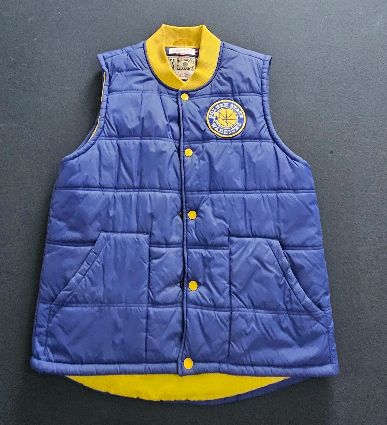 Selling a Mitchell & Ness Golden State Warriors vest in size L. It's in great condition and features the Hardwood Classics design. Perfect for any Warriors fan!