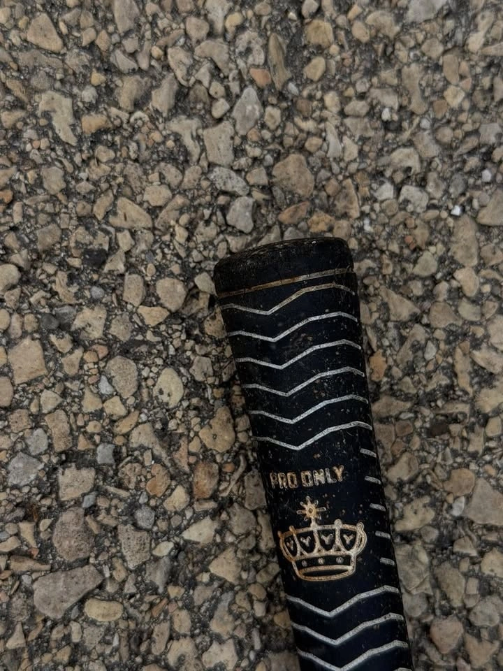 Set of three vintage “Pro Only” wood golf clubs featuring classic compression molded heads. Traditional black finish with gold lettering and crown logo on grips.