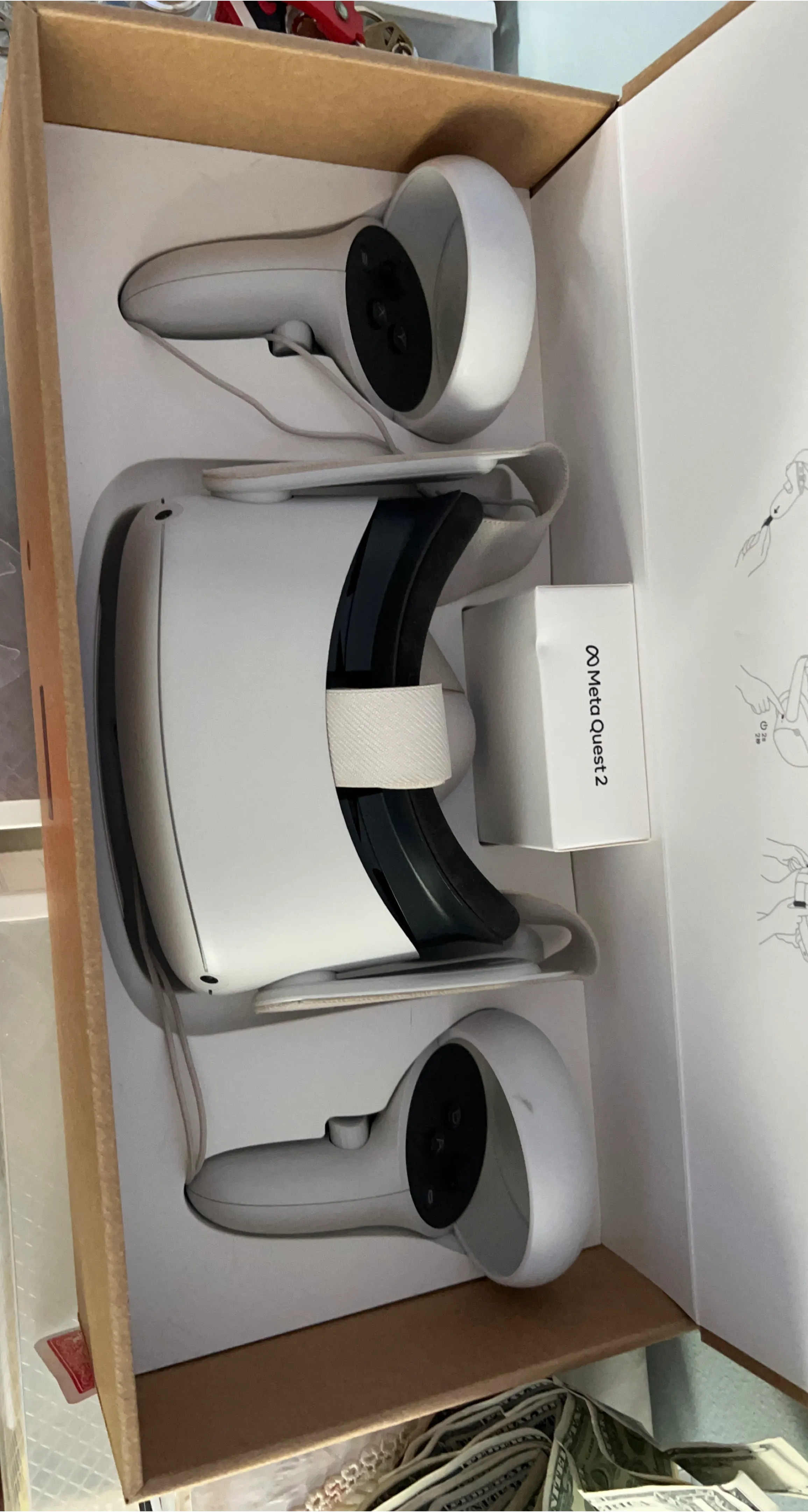 This is a Meta Quest 2 VR headset and controllers. It comes in its original packaging. Batteries included and i will put more batteries in the box for who ever buys it like 10 extra!