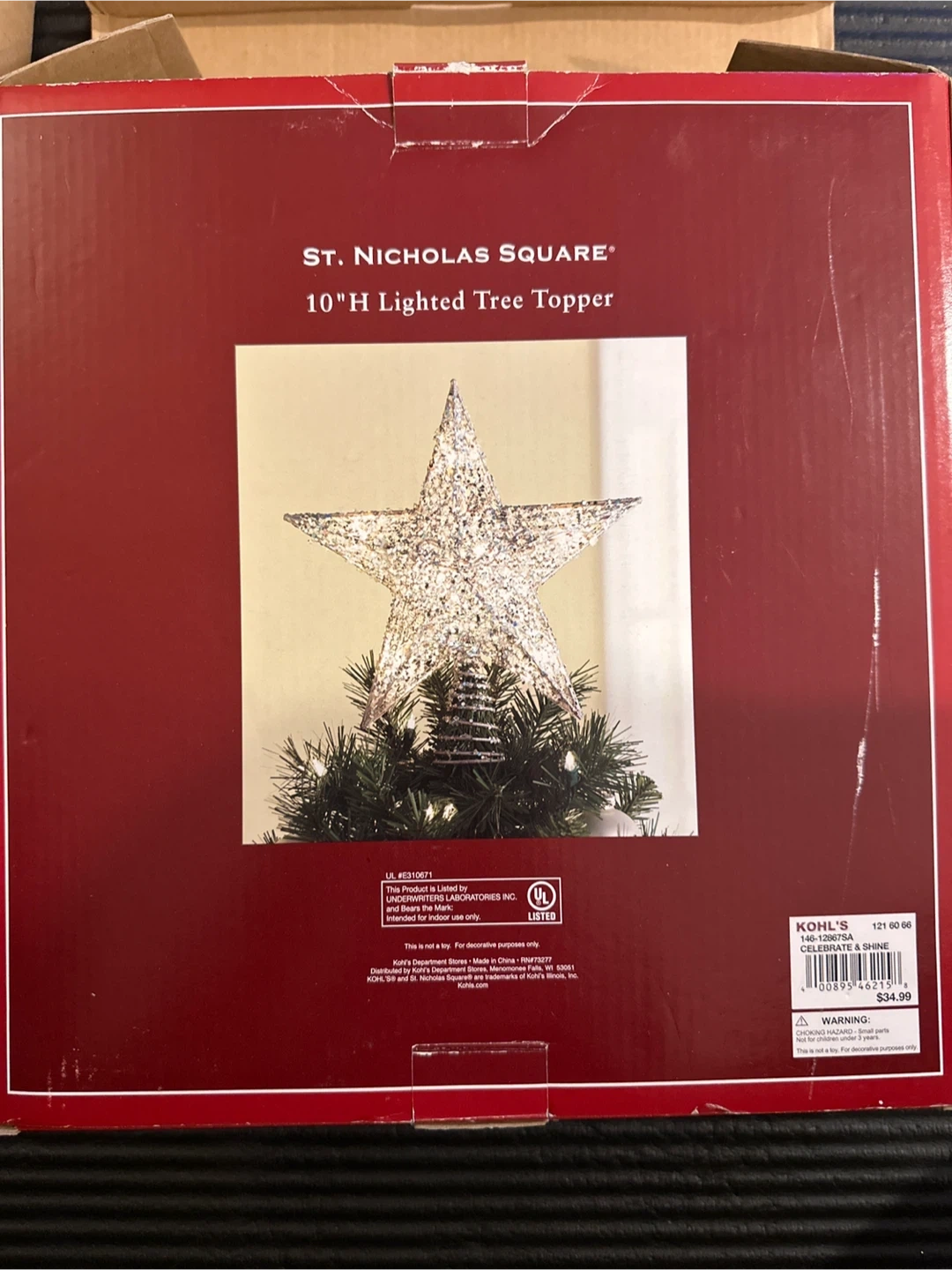 65Selling a St. Nicholas Square 10" Lighted Tree Topper. It's in great condition and ready to add some sparkle to your Christmas tree! The original box is included. It was originally bought for $34.99
