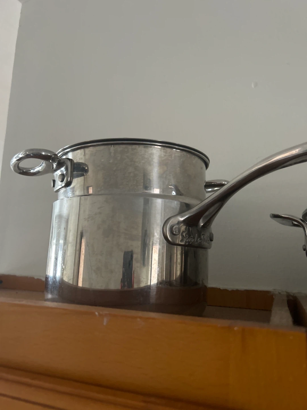 65This is a stainless steel saucier pan in good condition. It's perfect for making sauces or cooking small portions. It has a handle for easy grip and is made of durable stainless steel.