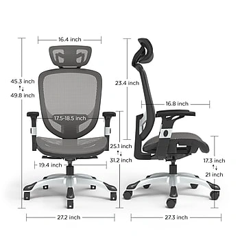 60Staples Hyken Office Chair. Retails for $170 plus tax. Pick up Murray Hill Designed for productivity and comfort, it offers adjustable armrests and seat height for personalized support. Comes in black and features a mesh back and seat Overall dimensions: 45.28-49.76"H x 27.1"W x 27.2"D ; Seat dimension: 17.24-20.98"H x 19.37"W x 16.77"D ; Back dimensions: 16.42"W x 23.43"D Arms adjust up and down to ease pressure on neck and support shoulders Features a swivel-tilt mechanism, upright tilt lock, and a tension knob that allows you to adjust the resistance of the chair for reclining, making it easier or harder to recline back Features adjustable seat and arm height, height and angle adjustable headrest, lumbar support, tilt tension, and tilt lock Rated for up to 275 lbs. based on an 8-hour workday
