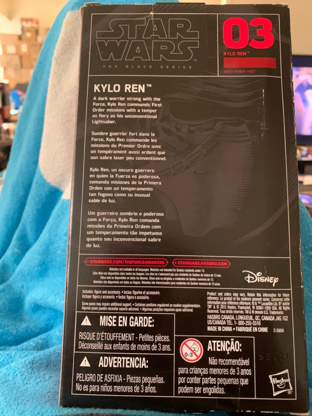 Selling a Star Wars The Black Series Kylo Ren action figure. It's a dark warrior strong with the Force, Kylo Ren commands First Order missions with a temper as fiery as his unconventional Lightsaber. The box is included