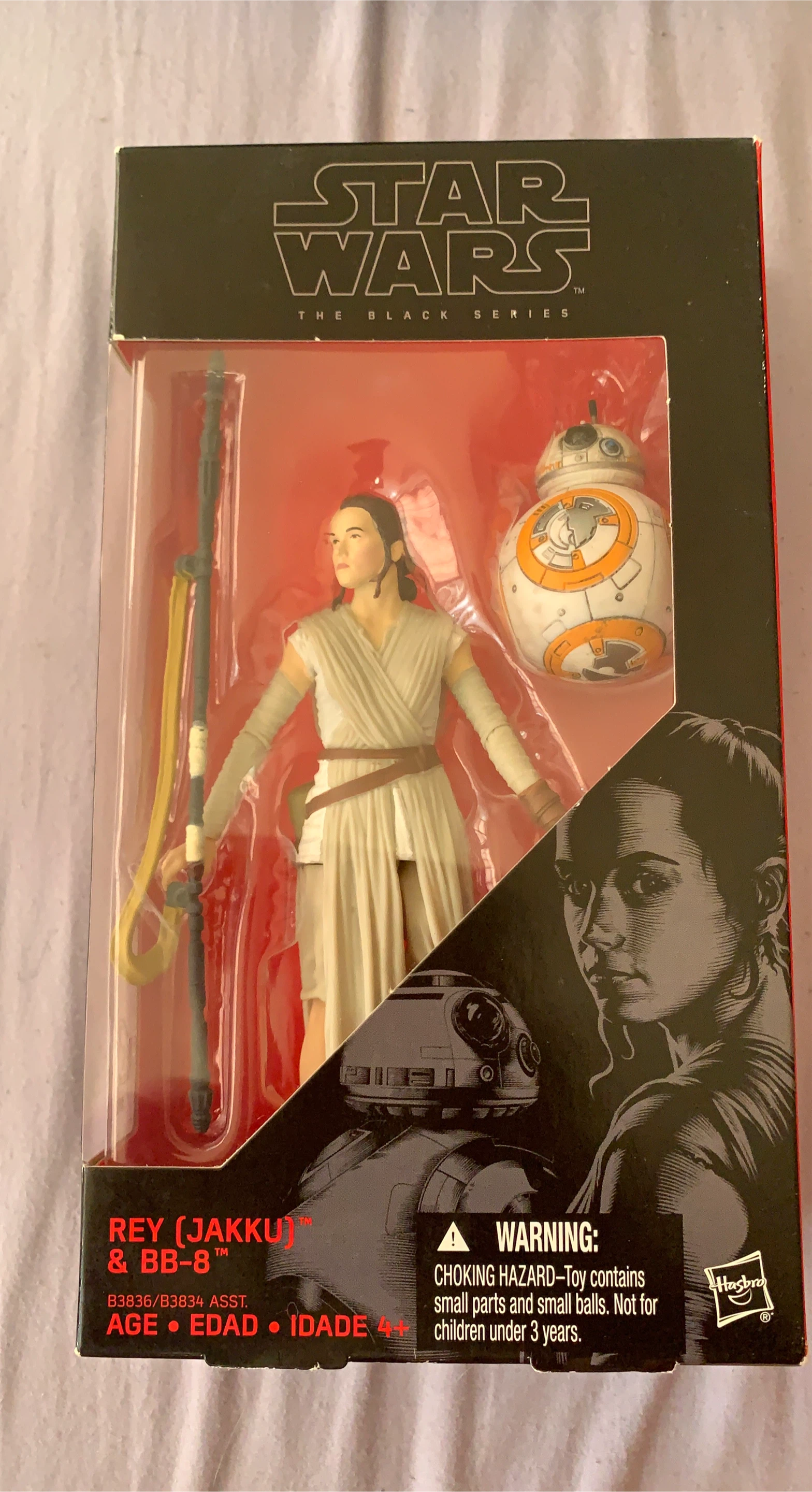 Selling a Star Wars The Black Series Rey (Jakku) & BB-8 action figure! This figure is new in box and ready for a new home. It includes Rey with her staff and the adorable BB-8. Perfect for any Star Wars collector or fan!