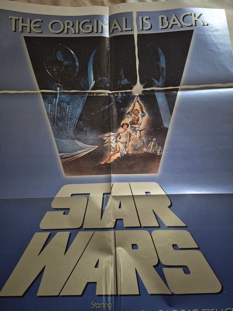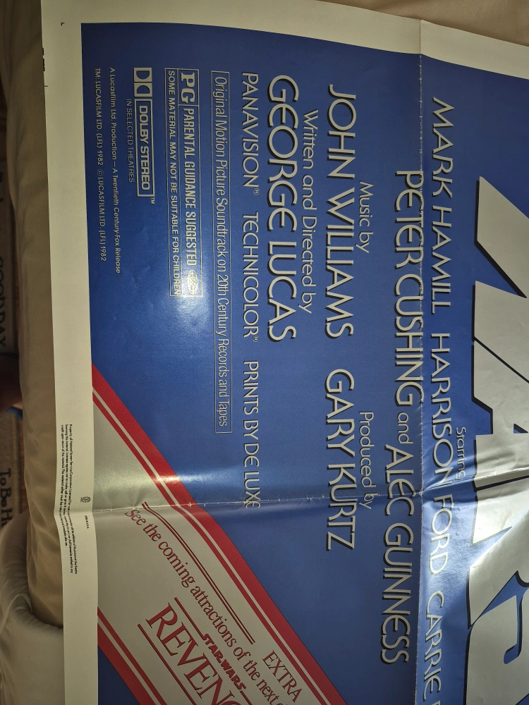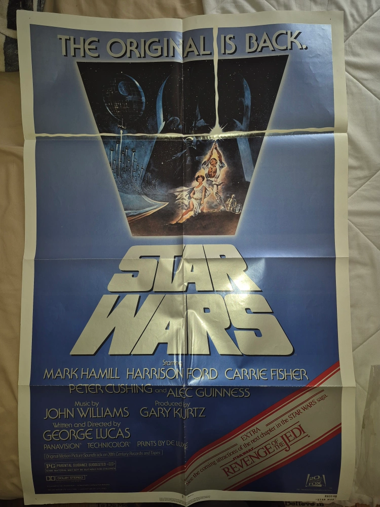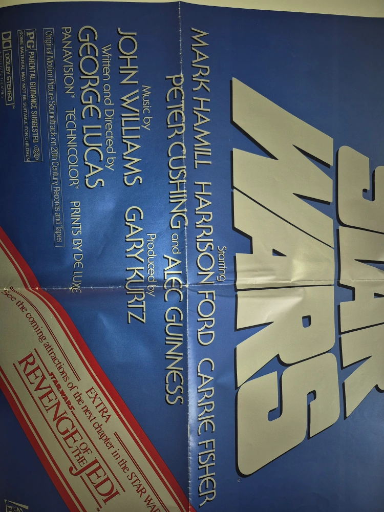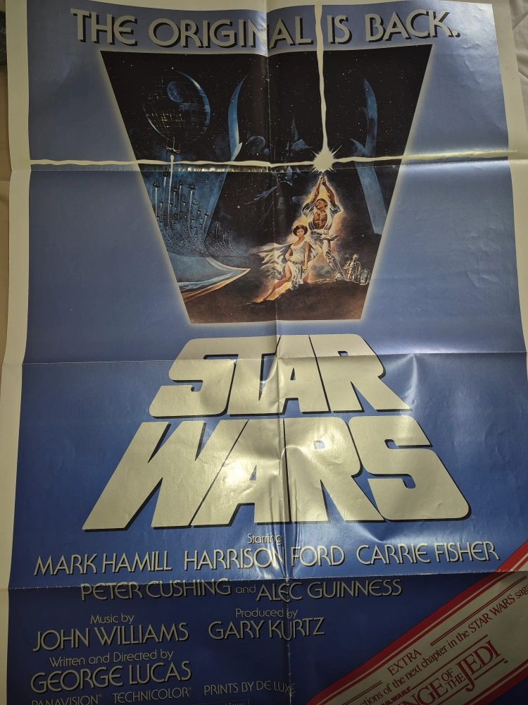 Selling a vintage "Star Wars: Revenge of the Jedi" movie poster. It's an original, featuring the classic cast and artwork. Perfect for any Star Wars fan or collector!