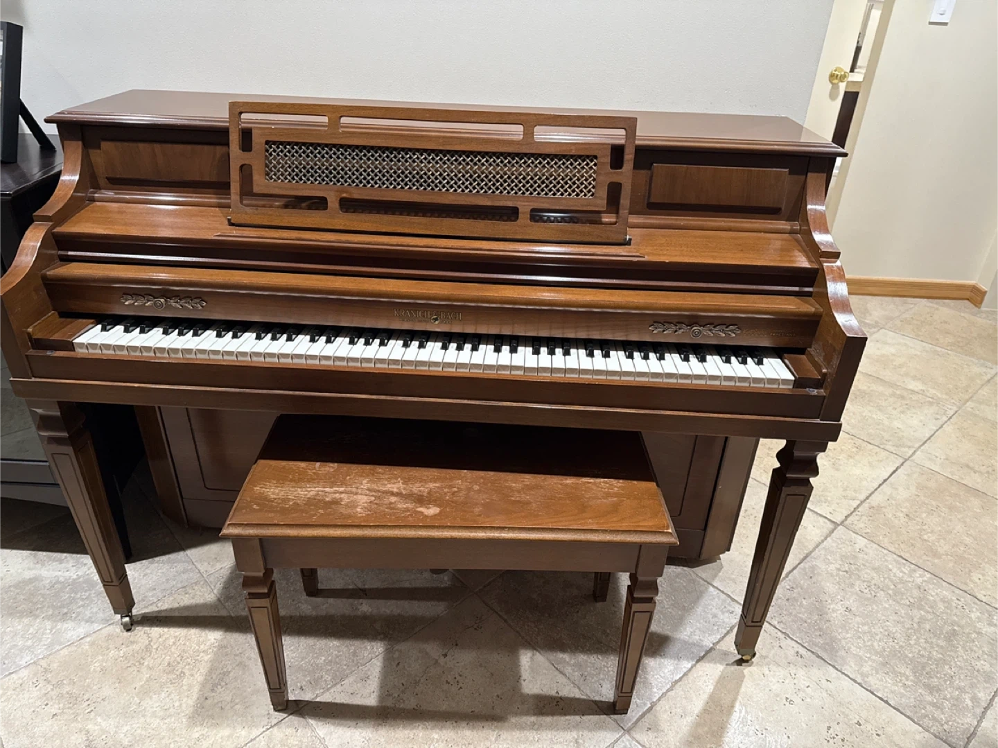 23Selling a Starr piano with a matching bench. It's a beautiful piece of furniture and a functional instrument. The piano has a warm, rich tone and is perfect for both beginners and experienced players. There are some signs of wear on the bench.