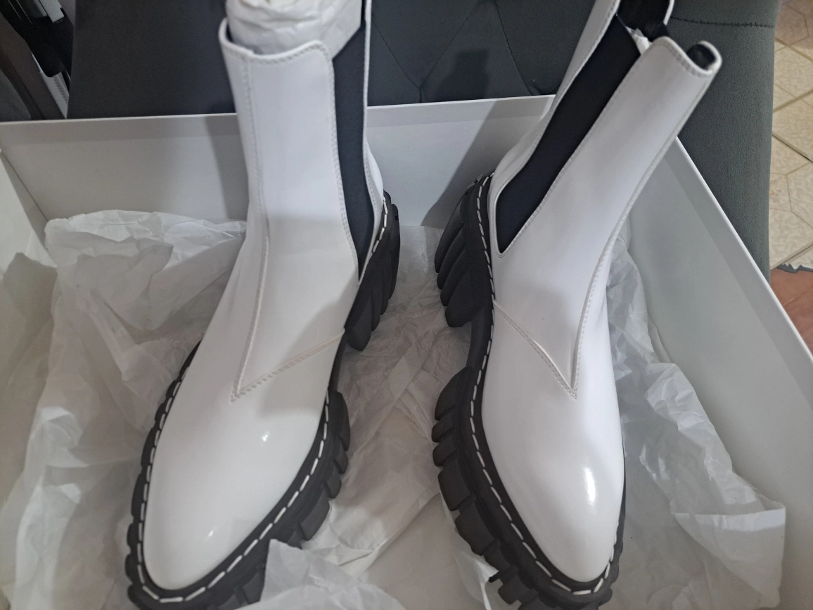 10These Stella McCartney ankle boots are in new condition and come with the original box! They are a size 36/5 and feature a sleek white design with a chunky black sole. Perfect for adding a stylish touch to any outfit!