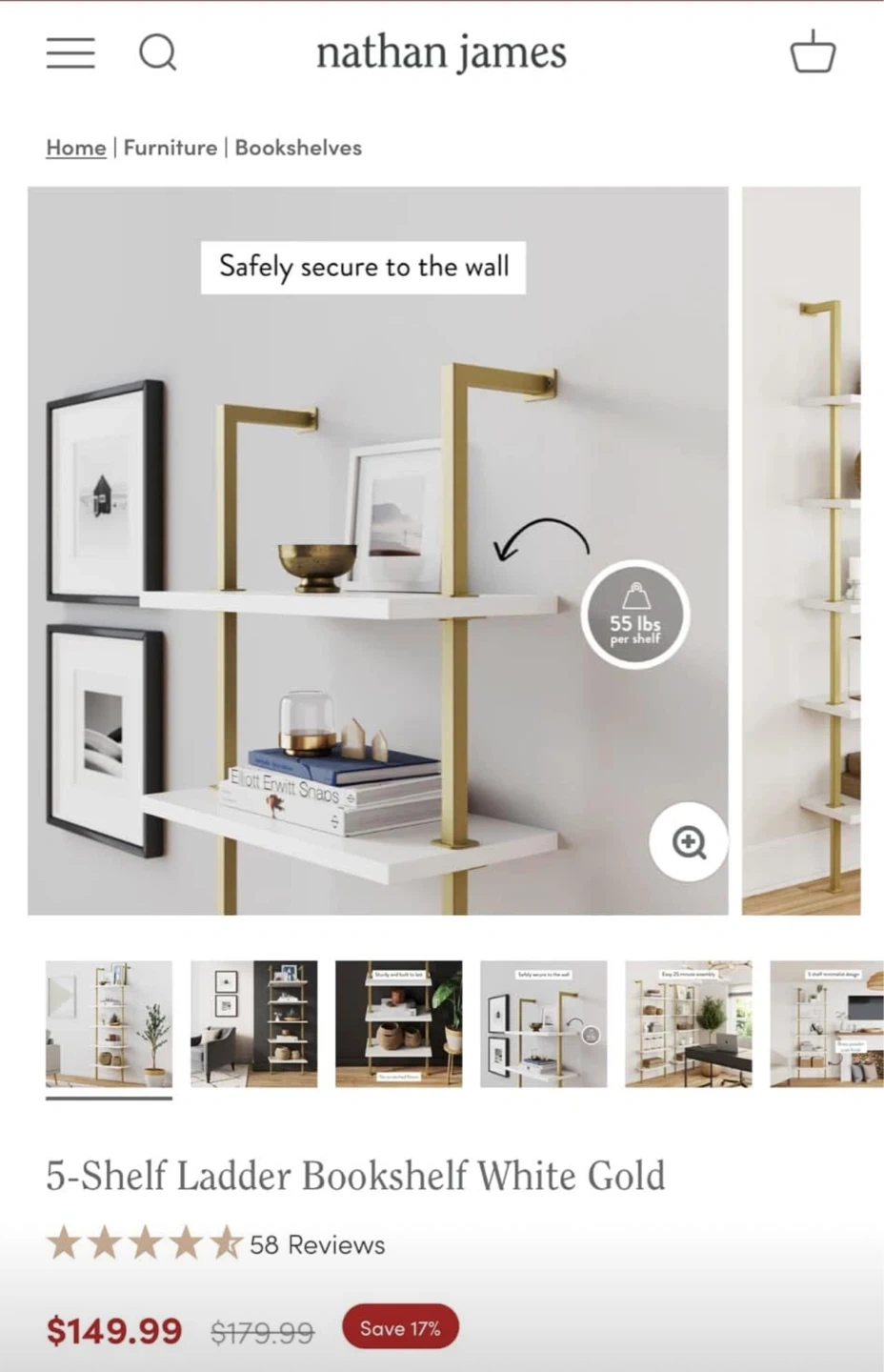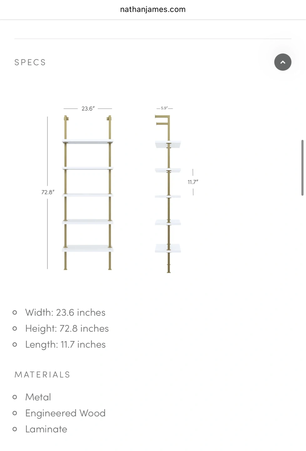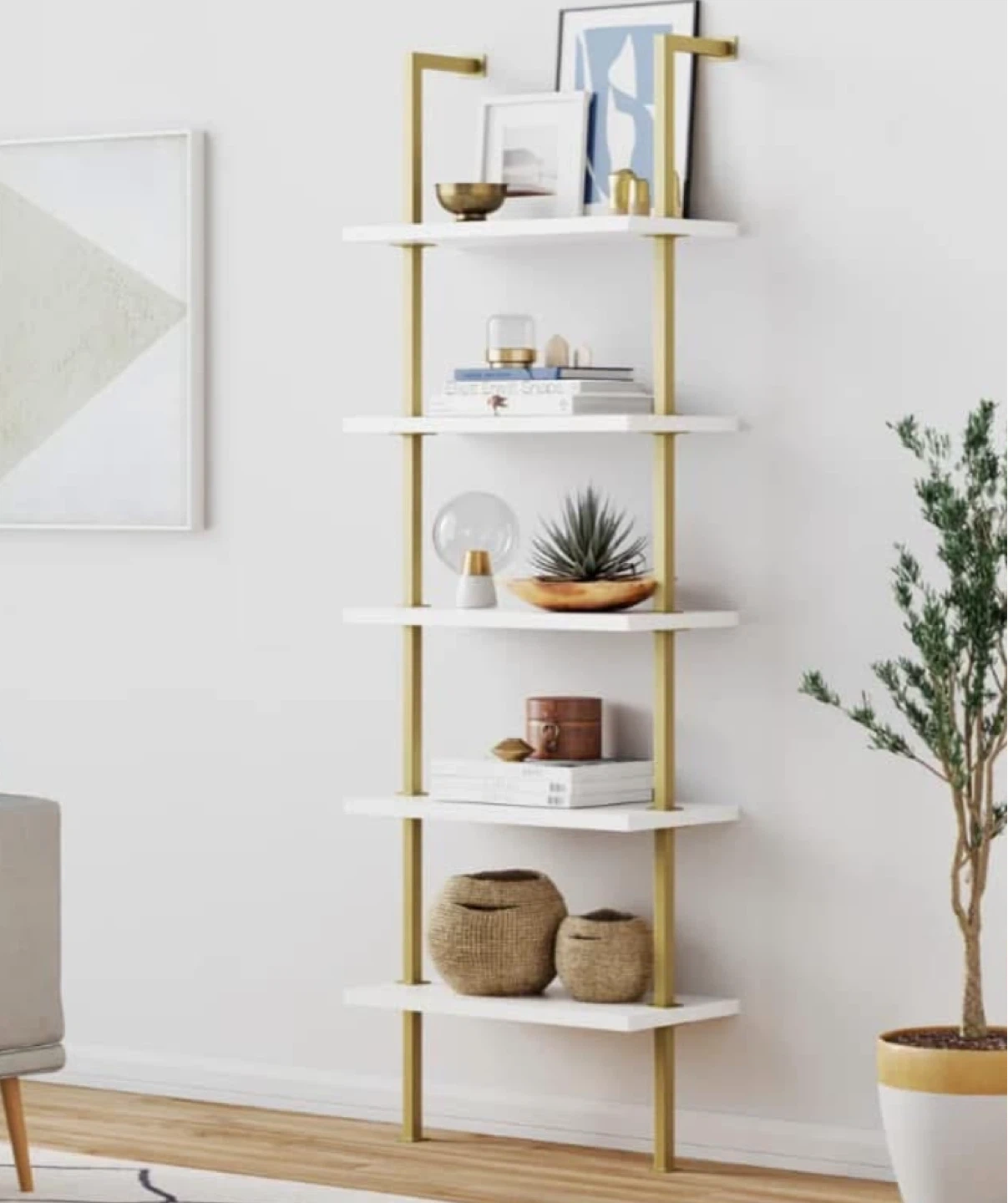 61Ladder bookcase. Gold and white. Assembly required. Wall mounted. Five shelves. Accepting best offer