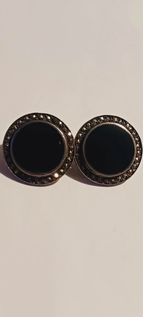 1000+Elegant Sterling Silver 925 earrings featuring black onyx stones surrounded by marcasite accents. They have a classic and elegant look, perfect for adding a touch of sophistication to any outfit. Excellent condition. ALL MY PRICES ARE NEGOTIABLE !