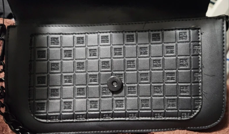 Selling a black Steve Madden crossbody bag! It has a unique, embossed pattern and chain detail. It's in new condition and perfect for everyday use or a night out