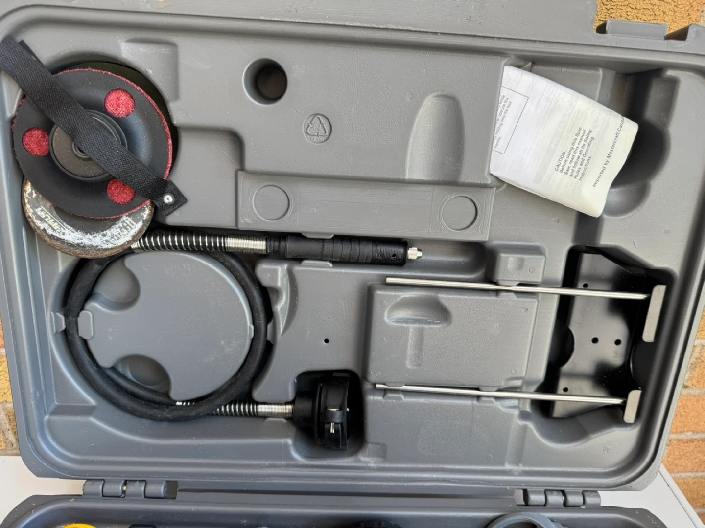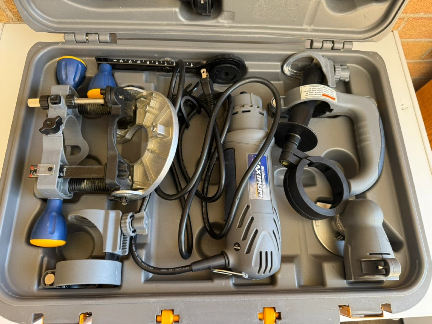 This Mastercraft rotary tool kit comes with various accessories for crafting and DIY projects. It includes a flexible shaft and cutting discs. It's all neatly organized in a durable carrying case.