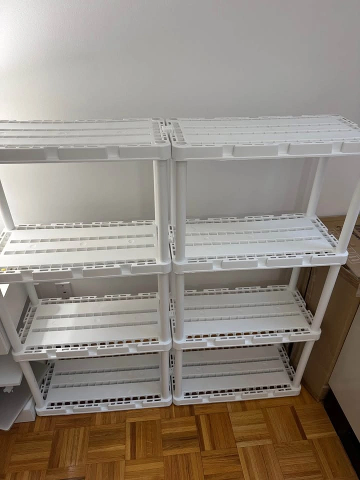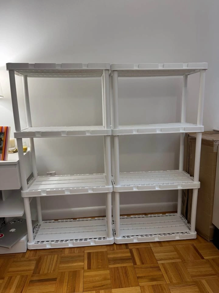 2x 4 shelve storage. Maximized Storage Solution: Light-duty storage-rack system offers versatile organization for garage, basement, utility rooms, and more with a robust design that can connect with multiple units for expansive storage. Versatile Storage Shelves: This garage shelving unit can be connected side by side with multiple compatible units for added storage room. Dimensions: 12" D x 24" W x 48" H. Solid Shelves: Our standing shelving unit features 4 solid fixed-height tiers that can hold up to 55 lbs. per shelf for a total weight capacity of 220 lbs. Originally $64, 1 year old, good condition must pick up in fidi