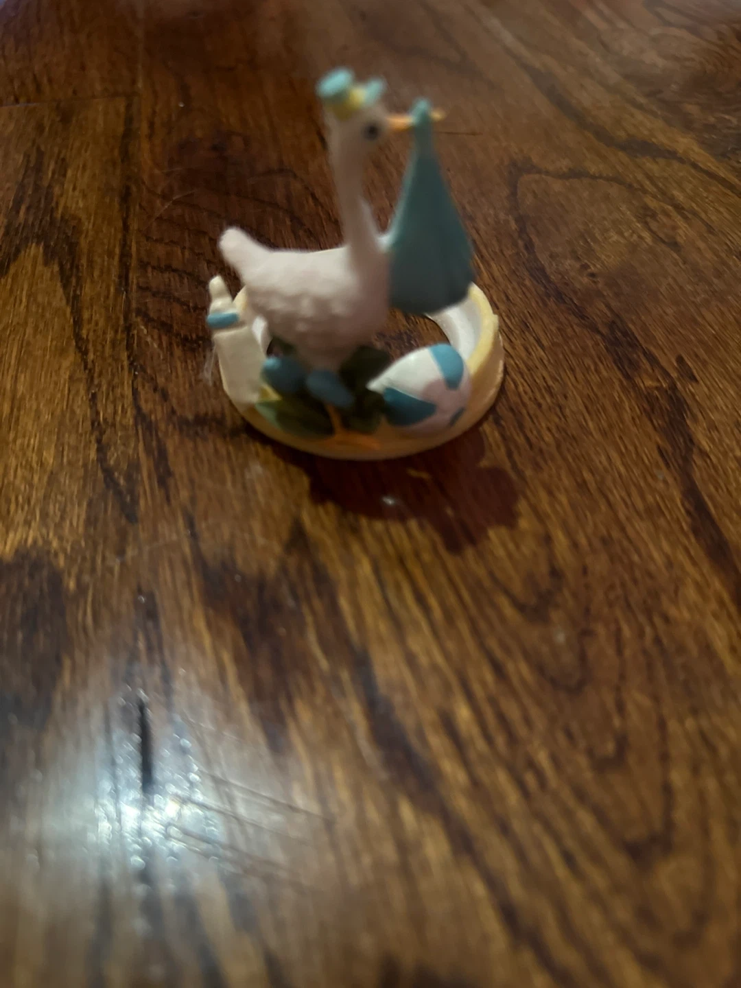 A cute little stork figurine carrying a baby bundle! It's in great shape and would look adorable in a nursery or as a baby shower decoration