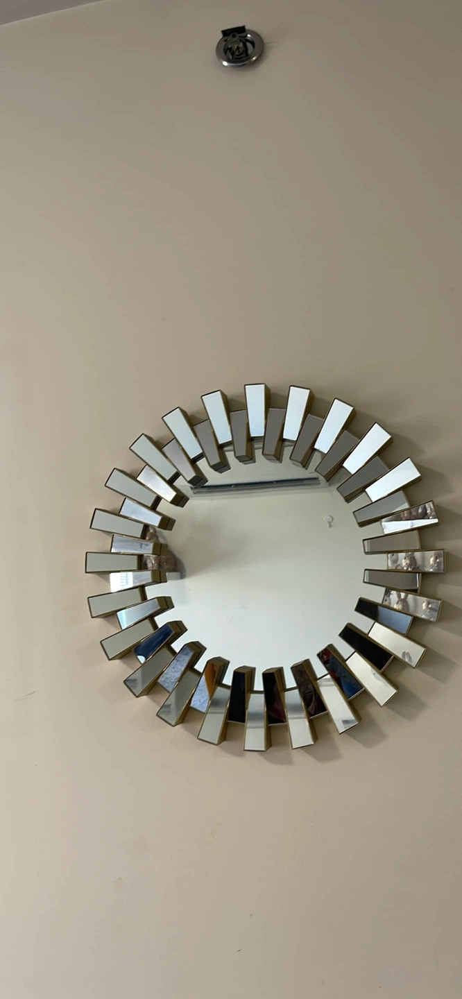 Add a touch of sunshine to your home with this stylish sunburst mirror! It's in great condition and ready to brighten up any room. Perfect for adding a unique and decorative accent to your space