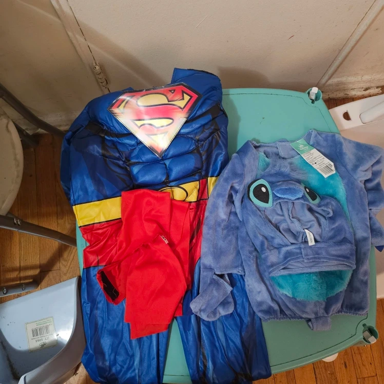 10Selling a Superman costume and a Stitch costume. Both are in good condition and ready for some fun dress-up adventures! Perfect for Halloween or playtime Spiderman 3-4t stitch 6-9months