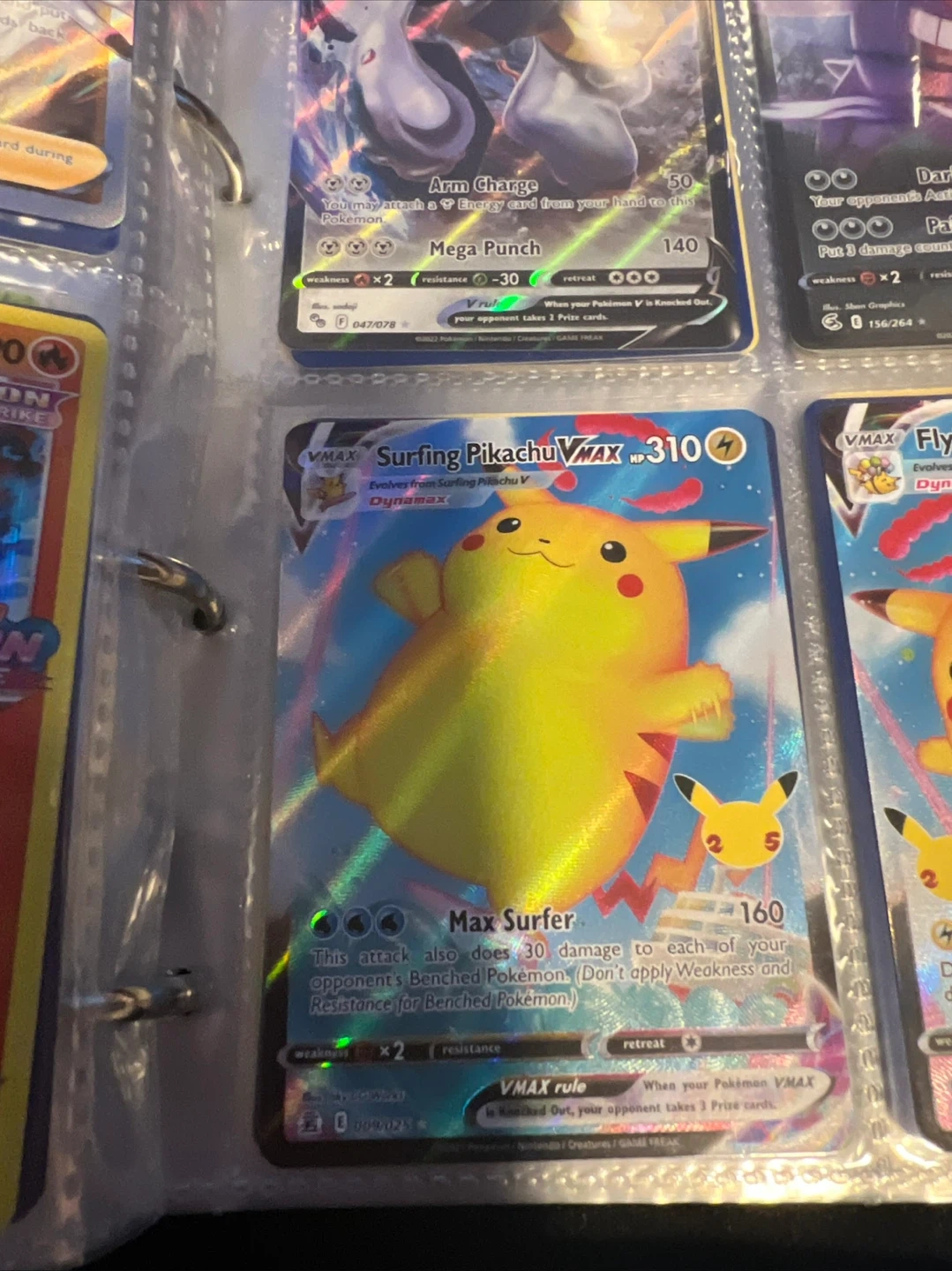 75Selling a Surfing Pikachu VMAX Pokemon card! It has a cool design with Pikachu surfing. A great addition to any collection!