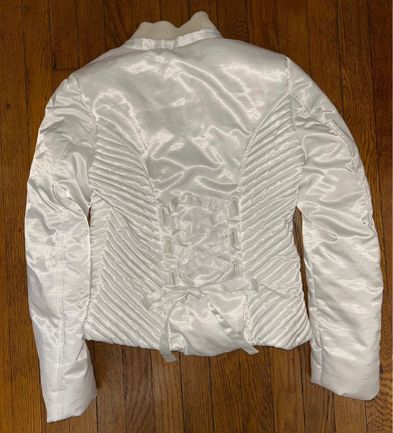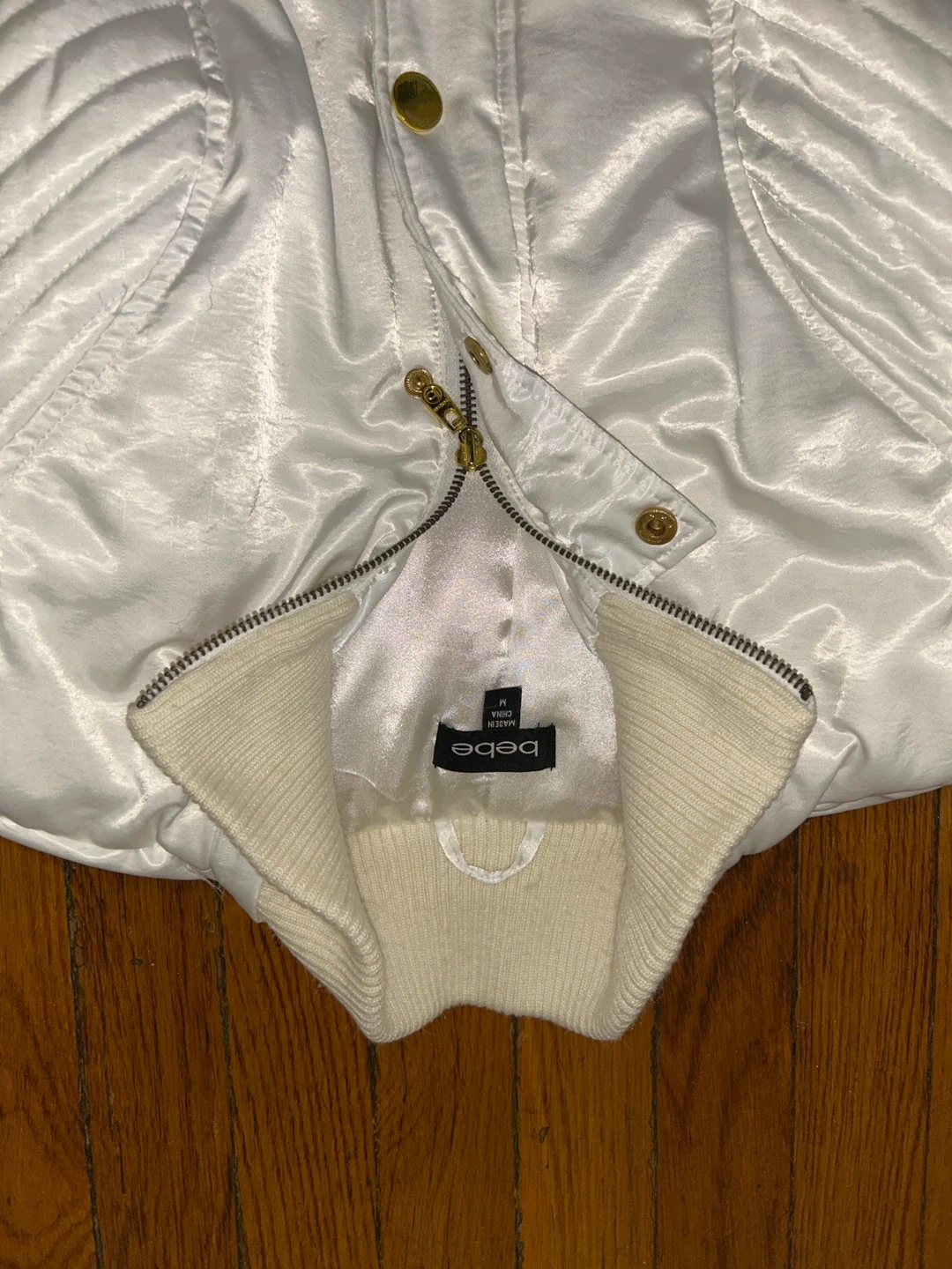 BEBE White Satin Corset Laced Down Puffer Jacket SZ M