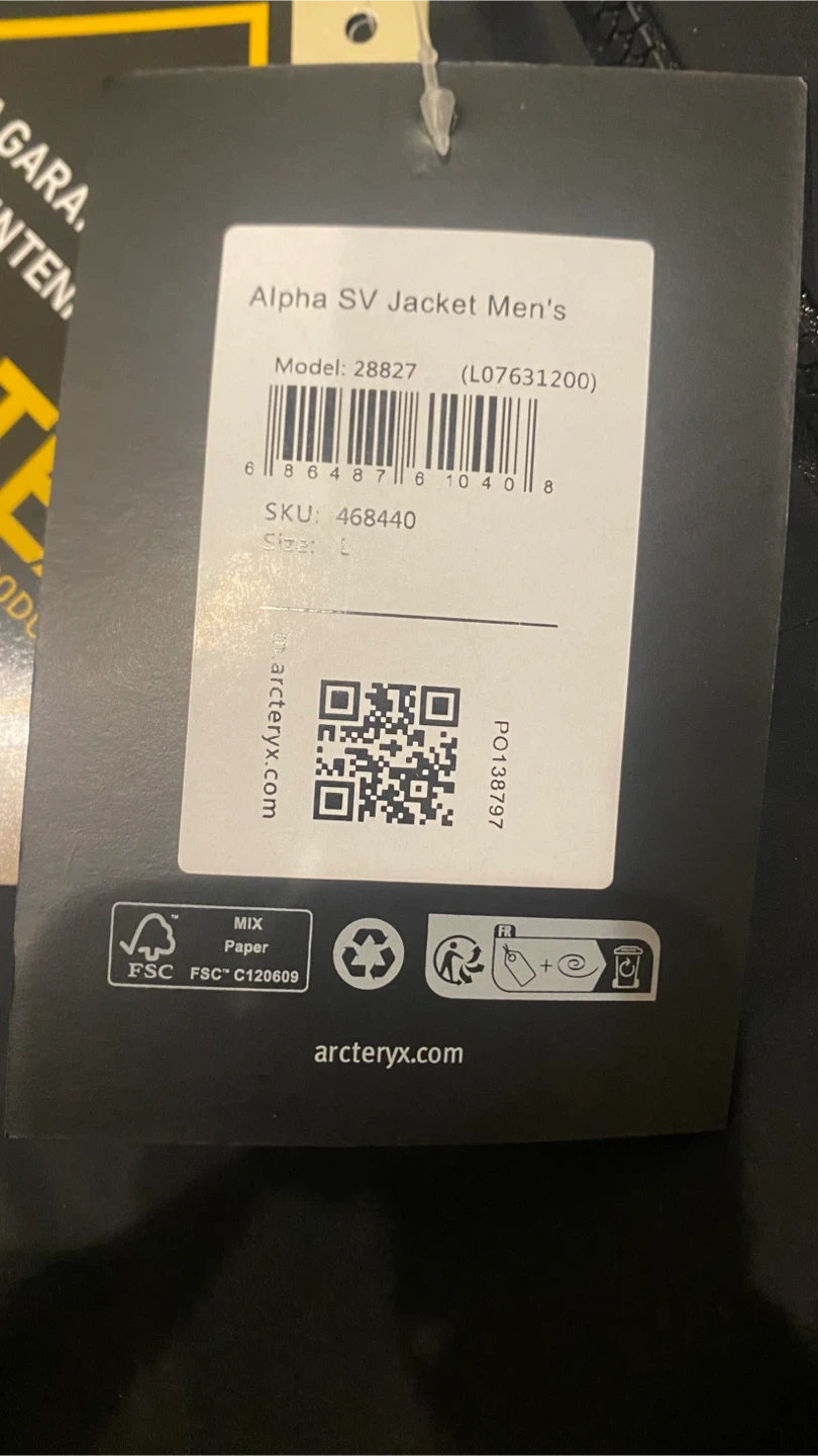 Men's Arc'teryx Alpha SV jacket. GORE-TEX Pro construction for guaranteed waterproof protection. Size L/G.