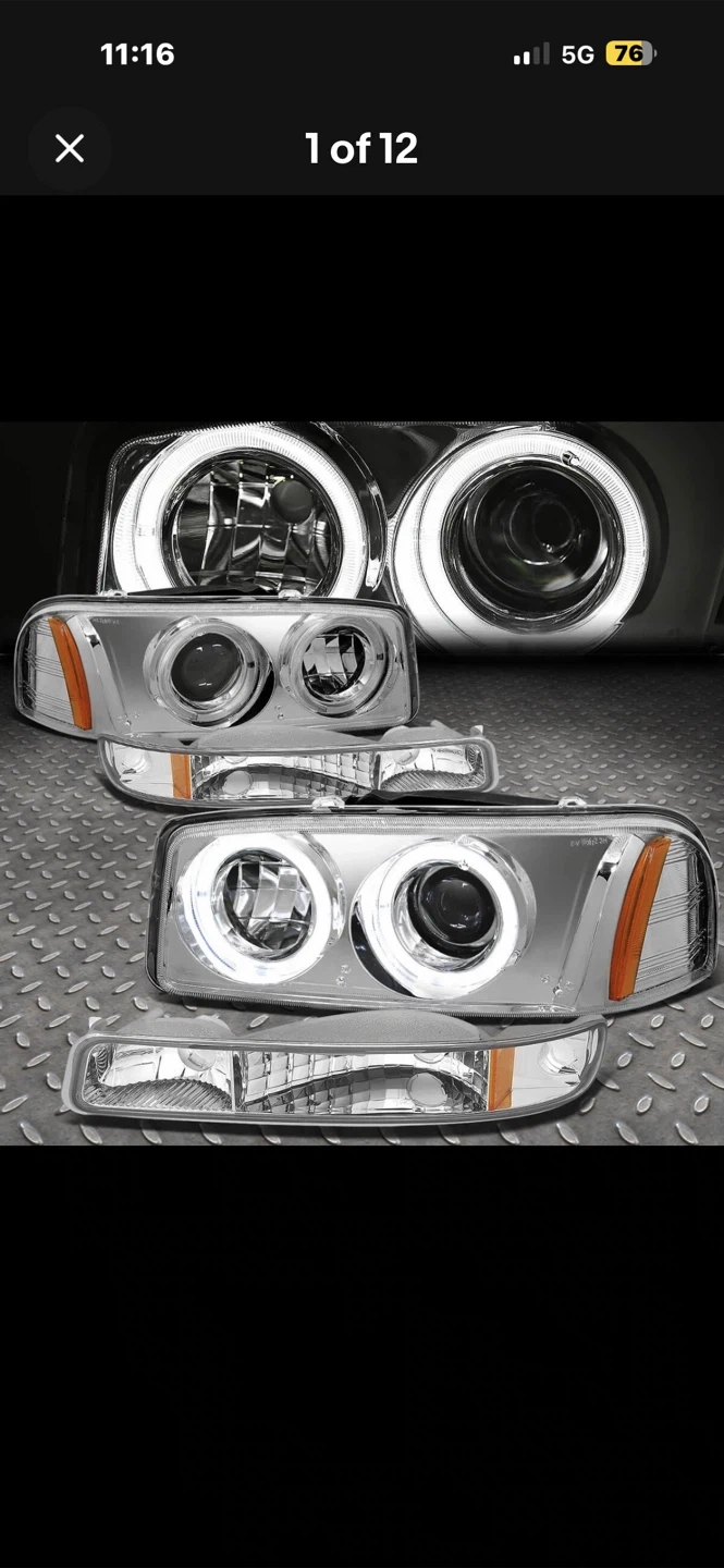 This is a pair of aftermarket headlights featuring bright LED halo rings. They're designed to replace your vehicle's original headlights. Crystal clear lenses with chrome housing.