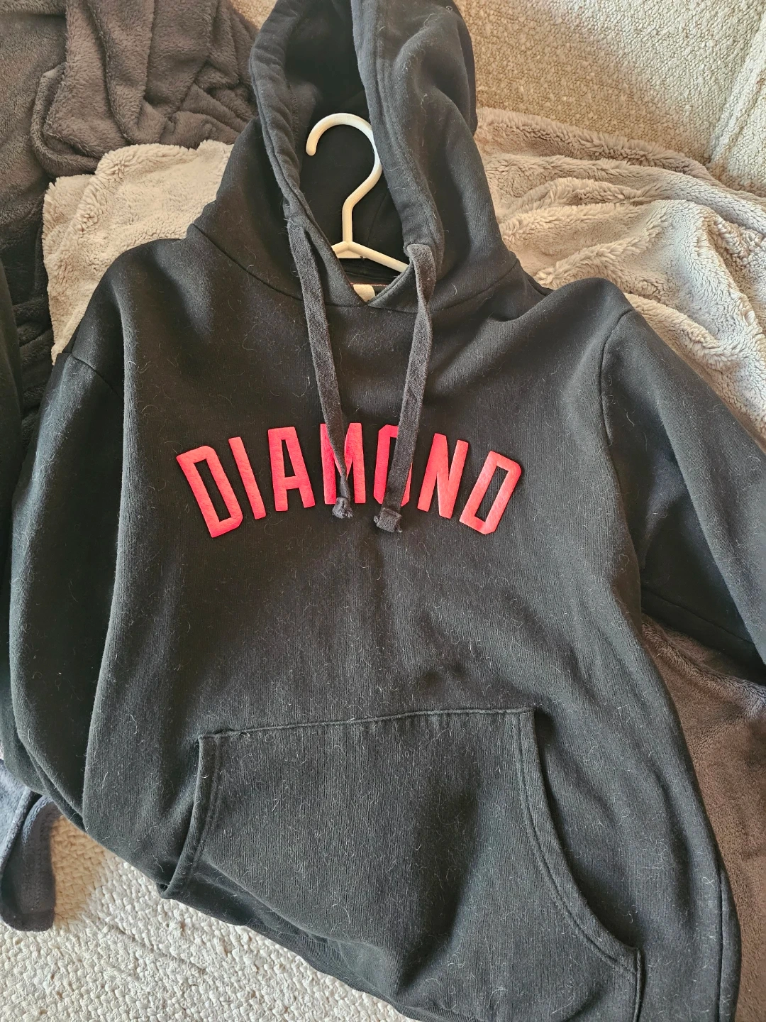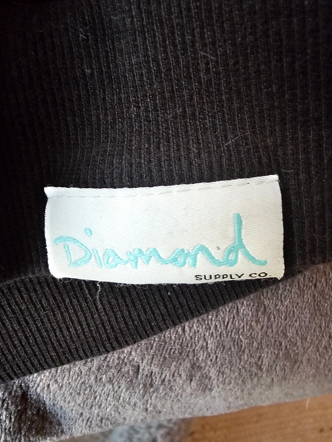 This is a black hoodie from Diamond Supply Co. It's a size medium. The hoodie is made from a comfortable fabric blend.