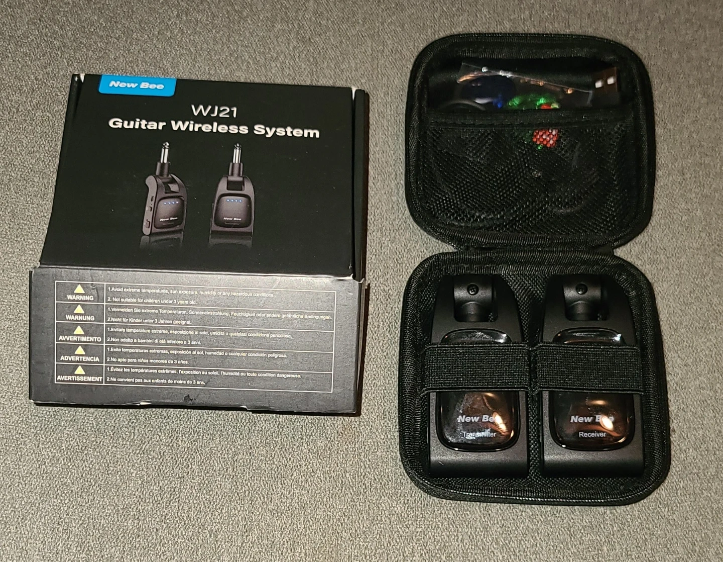 This is a Brand New Bee WJ21 Guitar Wireless System. It includes a transmitter and receiver. It comes with a carrying case for protection. This system's compact design makes it convenient for musicians on the go.