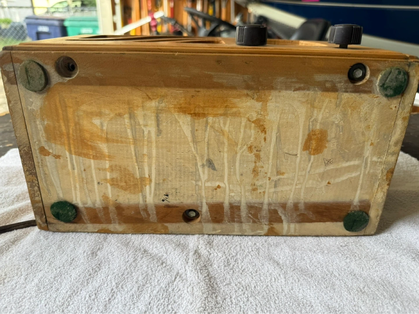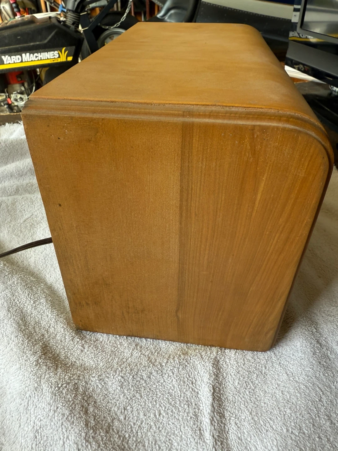 The radio powers up and hums,you can hear scratching when tuning. Probably needs cleaning. Cord is cracking.
