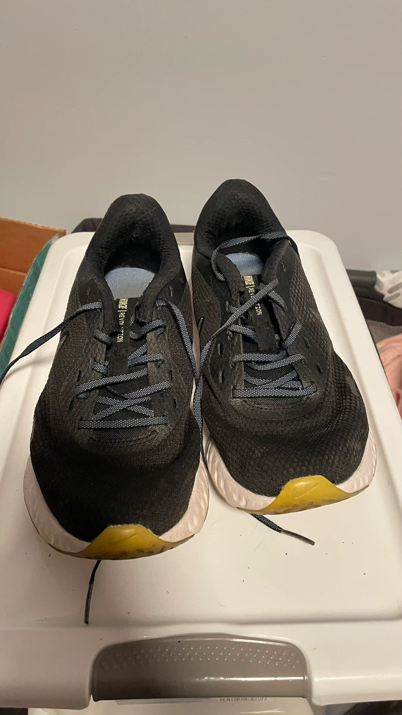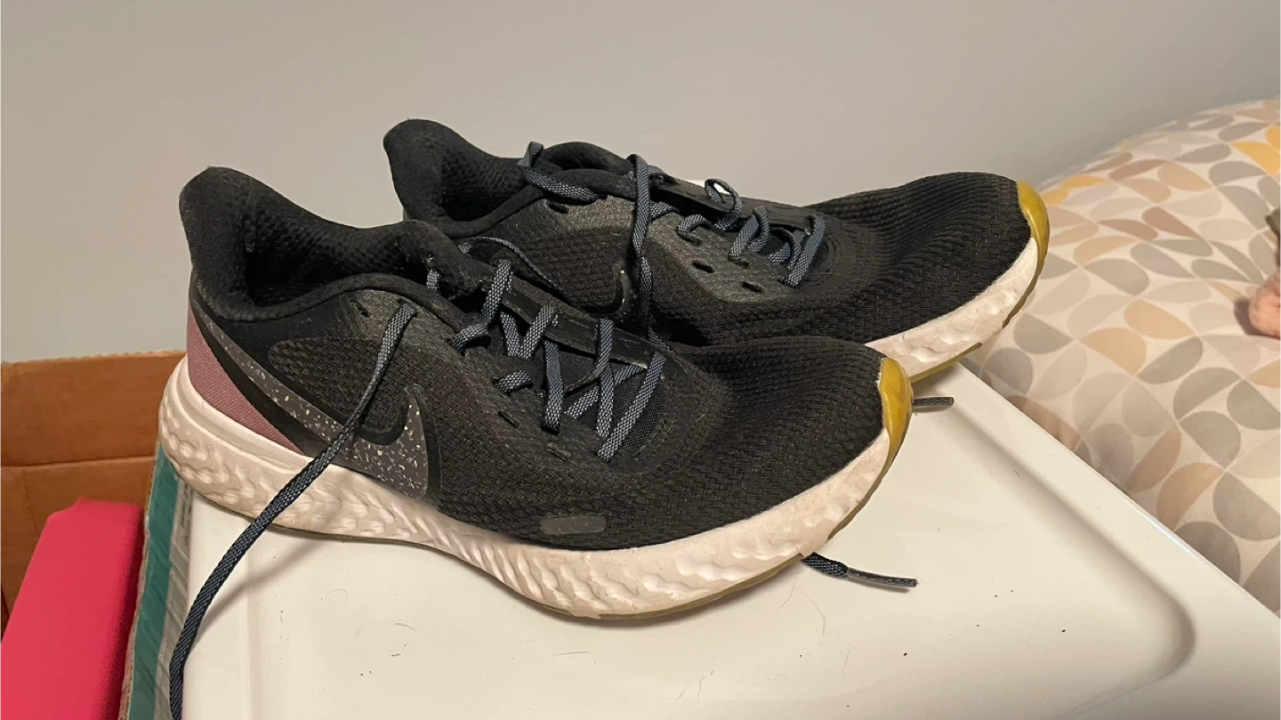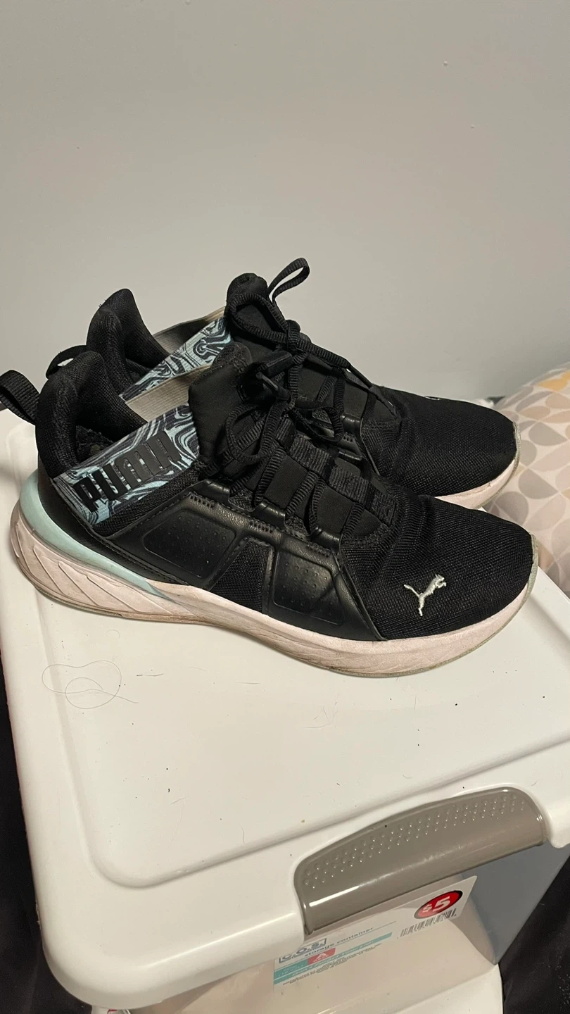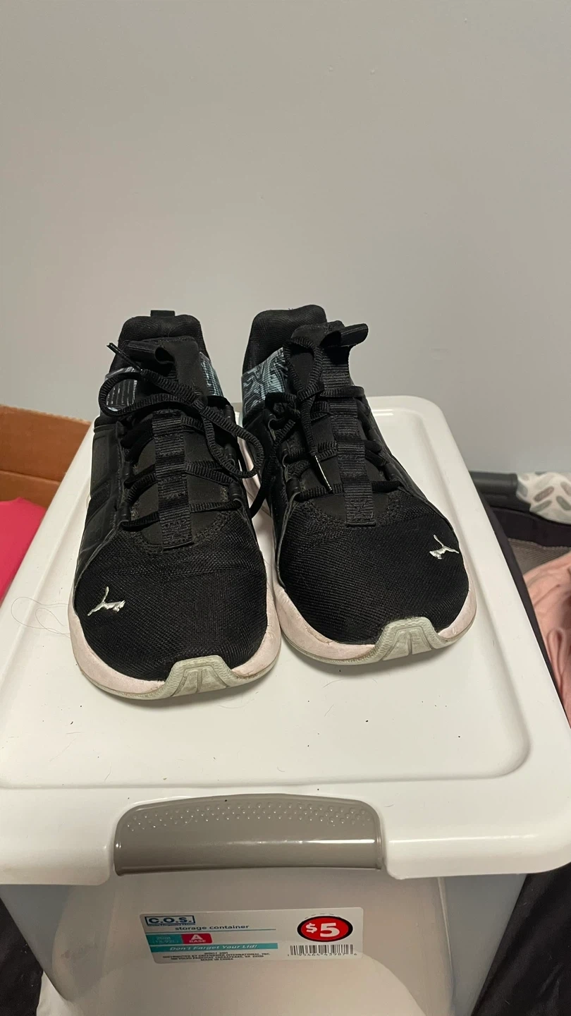 Black Nike Revolution 5 running shoes. Features a breathable mesh upper and a soft foam midsole. Lace-up closure. Great for everyday runs! And a pair of pumas have been gently shoes they just don’t give my feet the support the need anymore