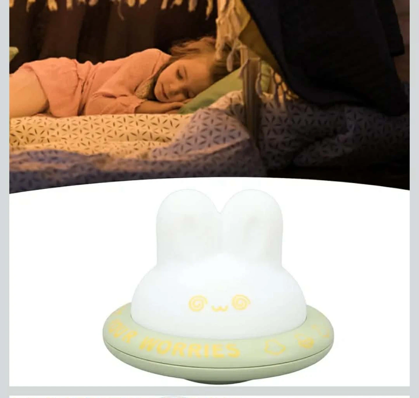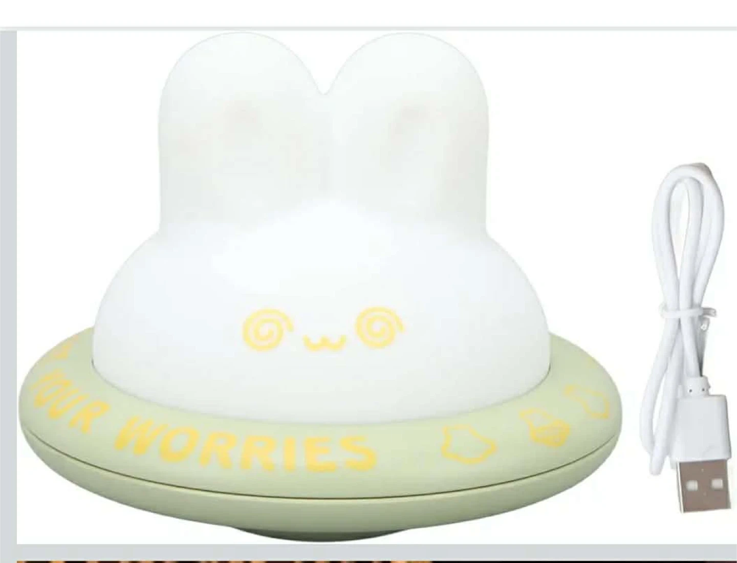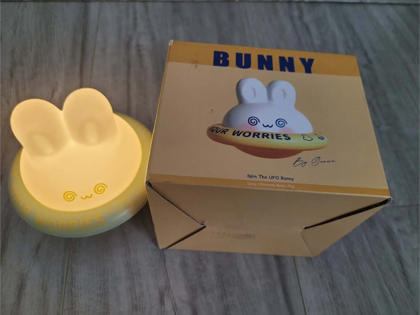 This cute bunny night light provides a soft glow. It's powered by a USB cable and includes the original box. Great for a child's bedroom!