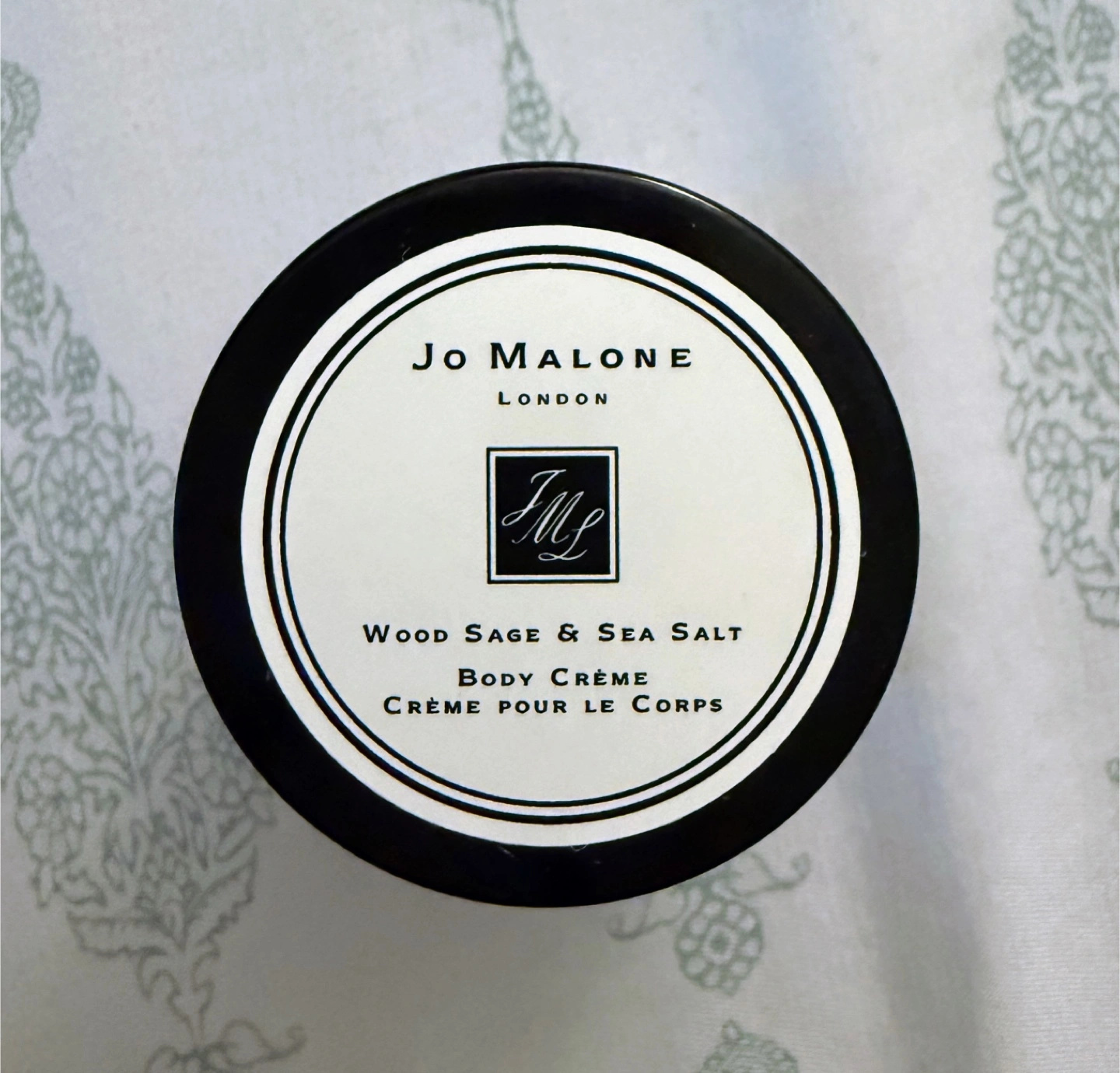 Selling a Jo Malone Wood Sage & Sea Salt Body Creme travel size 15 mL. It's a luxurious body cream that leaves your skin feeling soft and moisturized. The scent is a lovely blend of woody and fresh notes, perfect for everyday wear.
