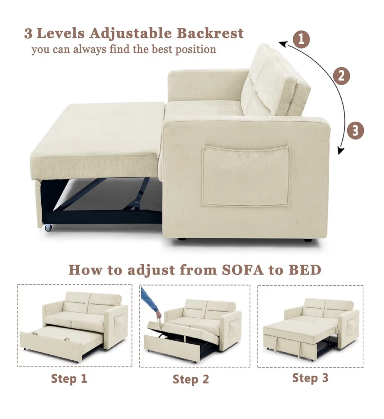 Anetek 3-in-1 Convertible Sleeper Loveseat Couch, Beige
