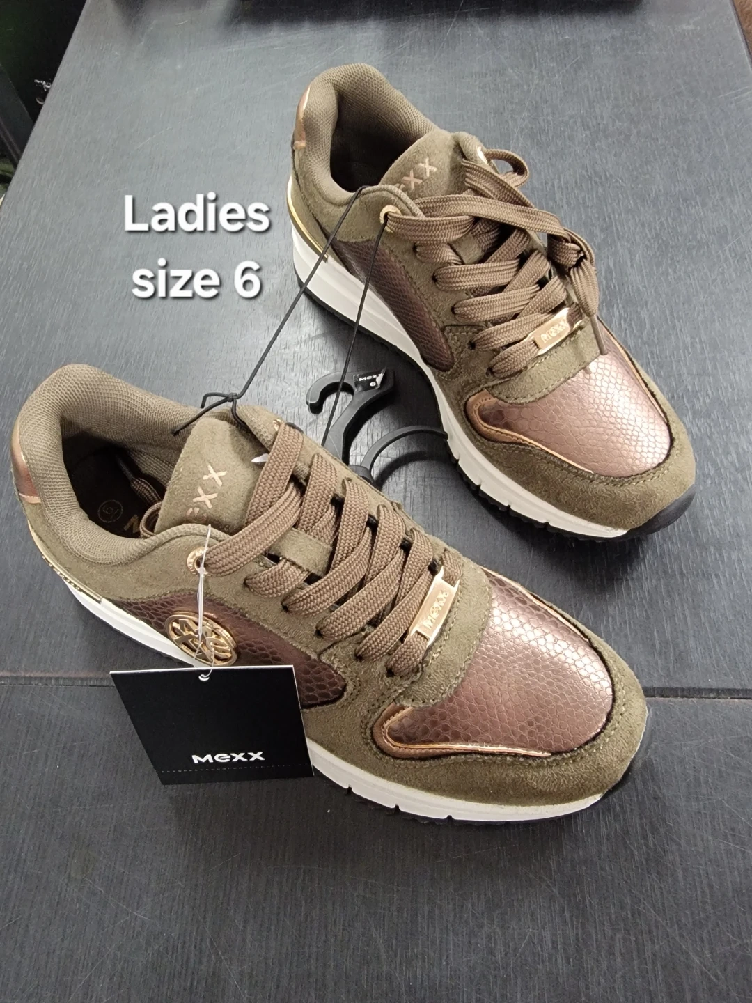 Selling a pair of MGXX ladies sneakers in size 6. They feature a stylish design with a mix of textures and colours. Perfect for casual wear!