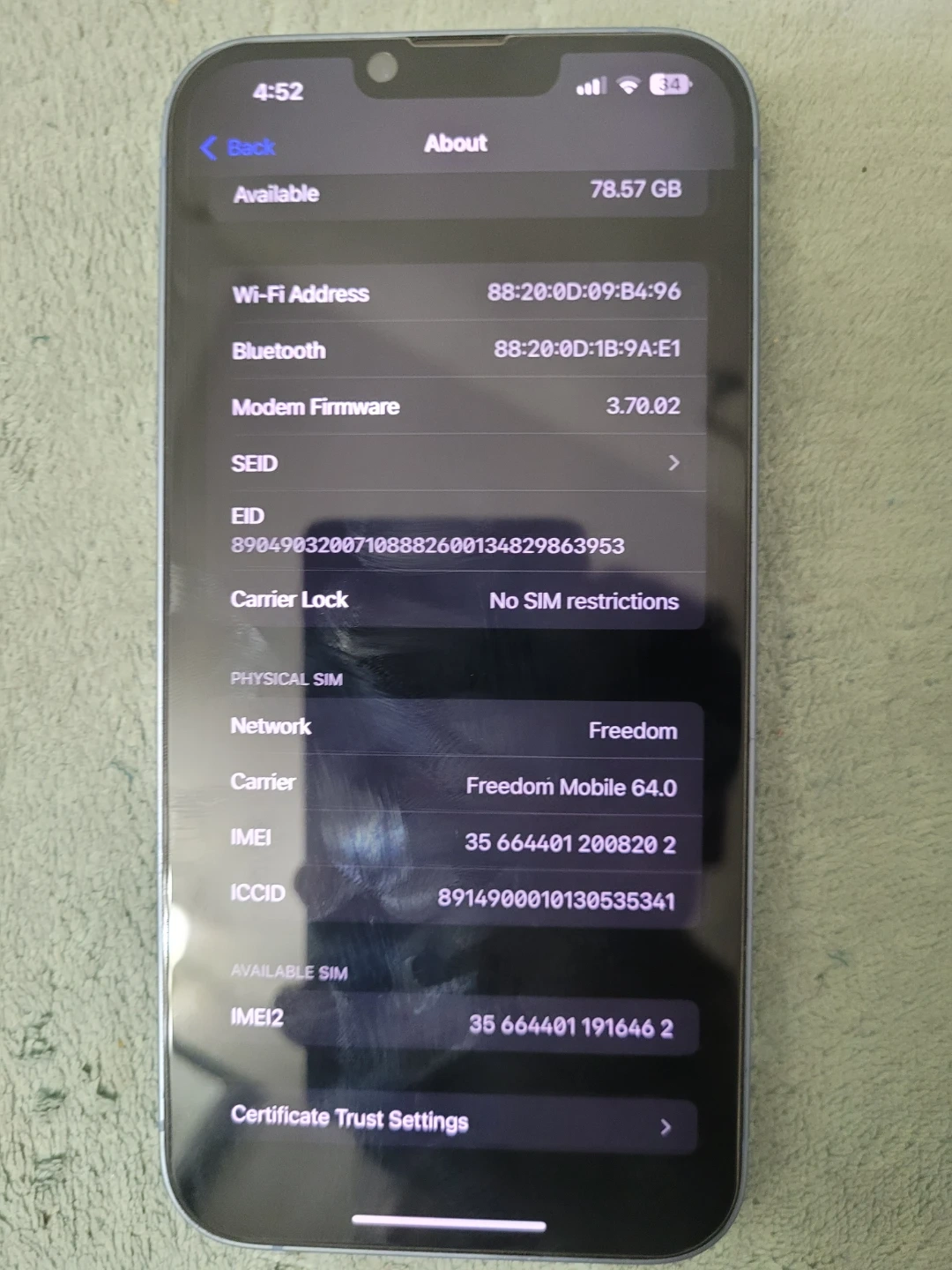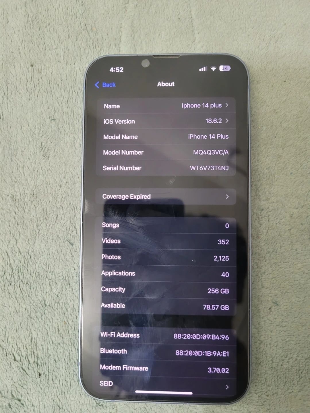 Apple iPhone 14 Plus with 256GB capacity. 86% battery health. No parts replaced. Used with care. Price is negotiable