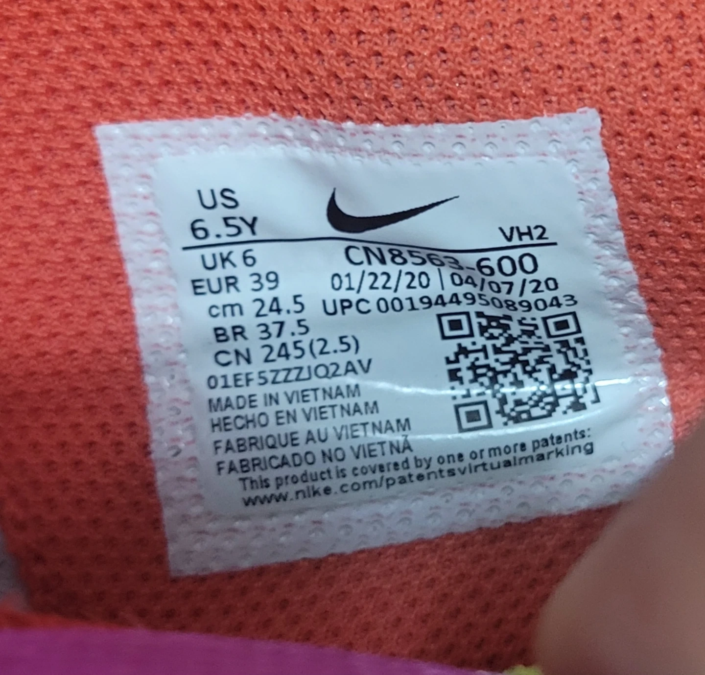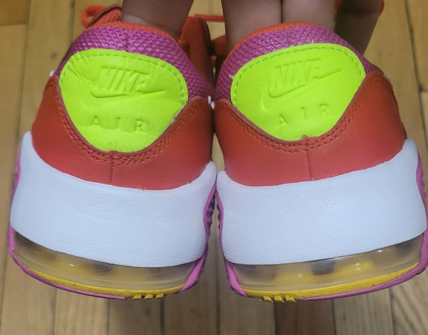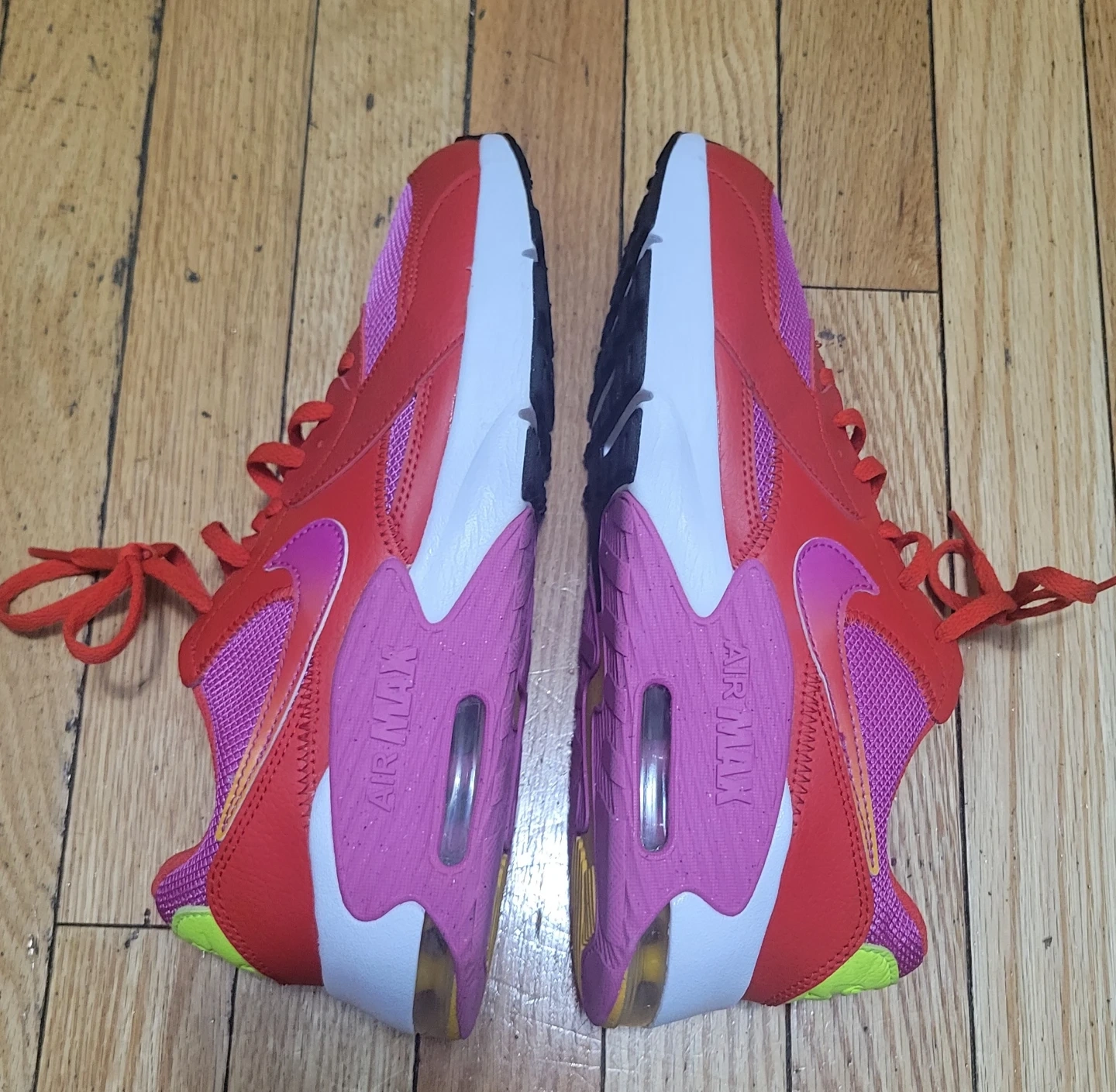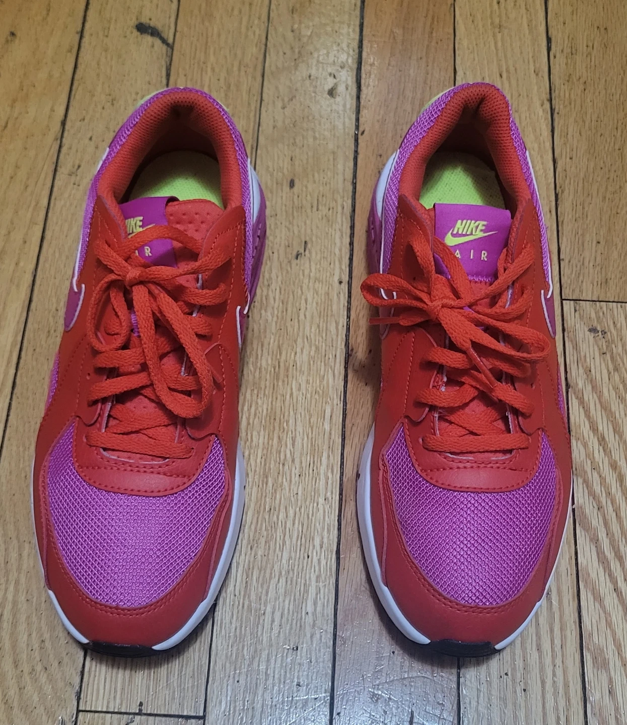Nike Air Max youth shoes in a vibrant red and pink colorway. Made in Vietnam, these sneakers feature Air Max cushioning. They're a size US 6.5Y. Perfect for active kids!