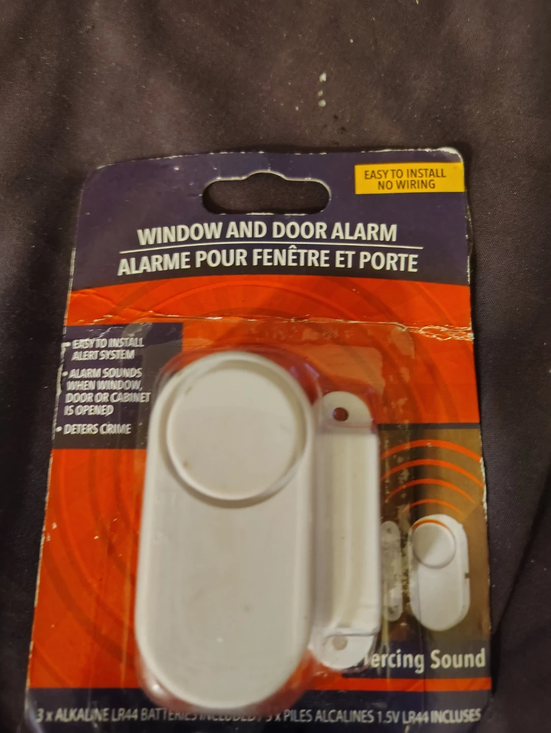 7pks of Easy to install, no wiring needed window and door alarm. It sounds when a window, door, or cabinet is opened and deters crime. Includes 3 alkaline LR44 batteries.