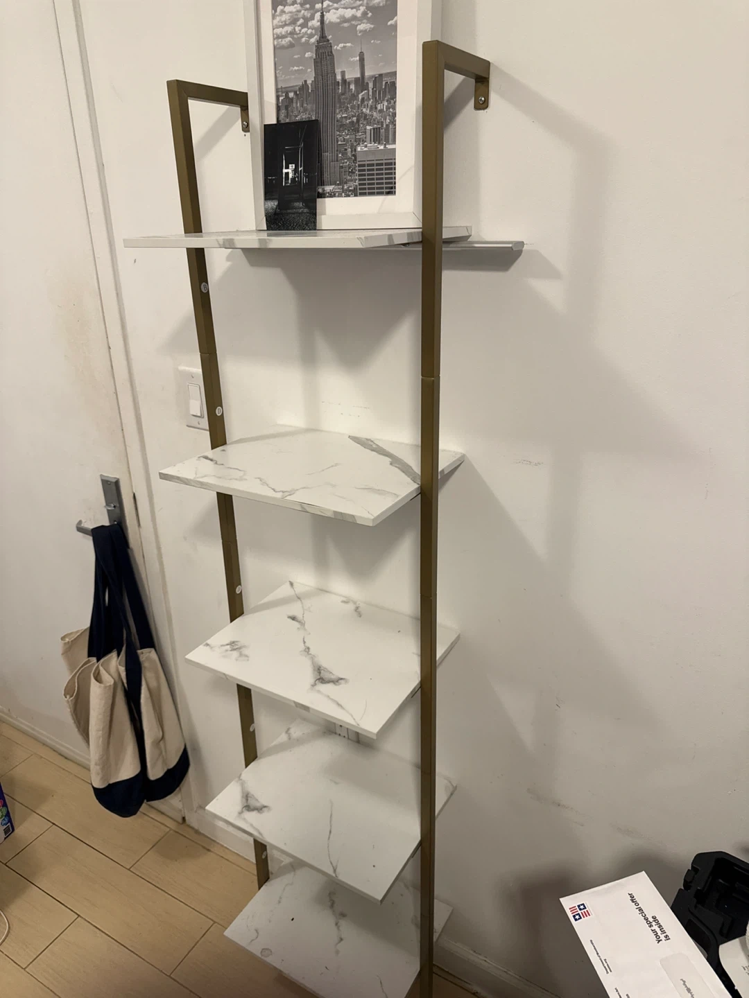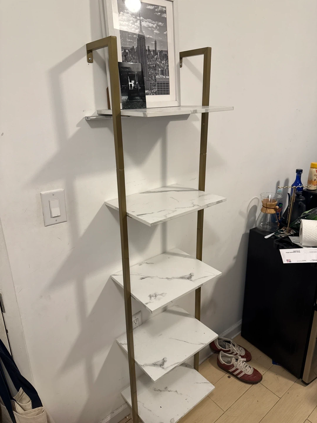 Ladder Bookshelf - White Marble and Gold