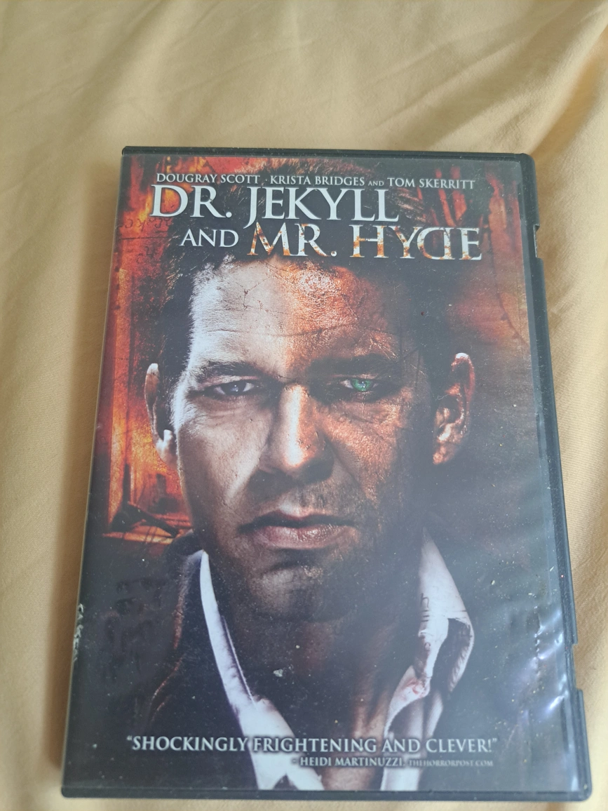 Selling a DVD of Dr. Jekyll and Mr. Hyde starring Dougray Scott, Krista Bridges, and Tom Skerritt. It's described as "Shockingly Frightening and Clever!"