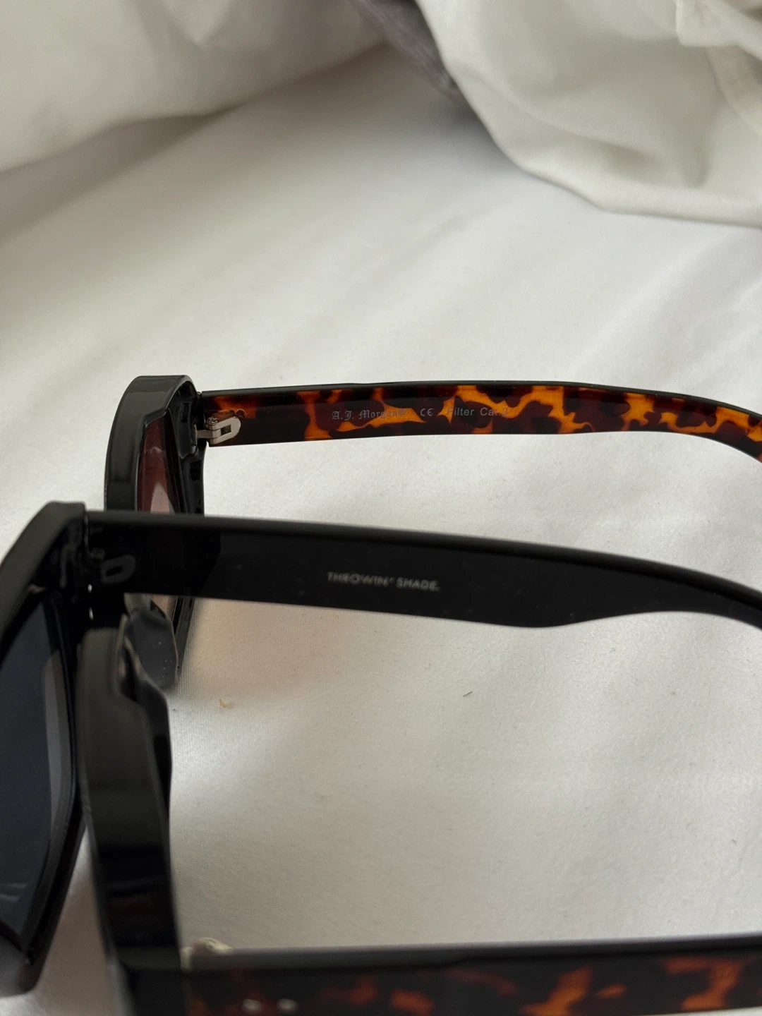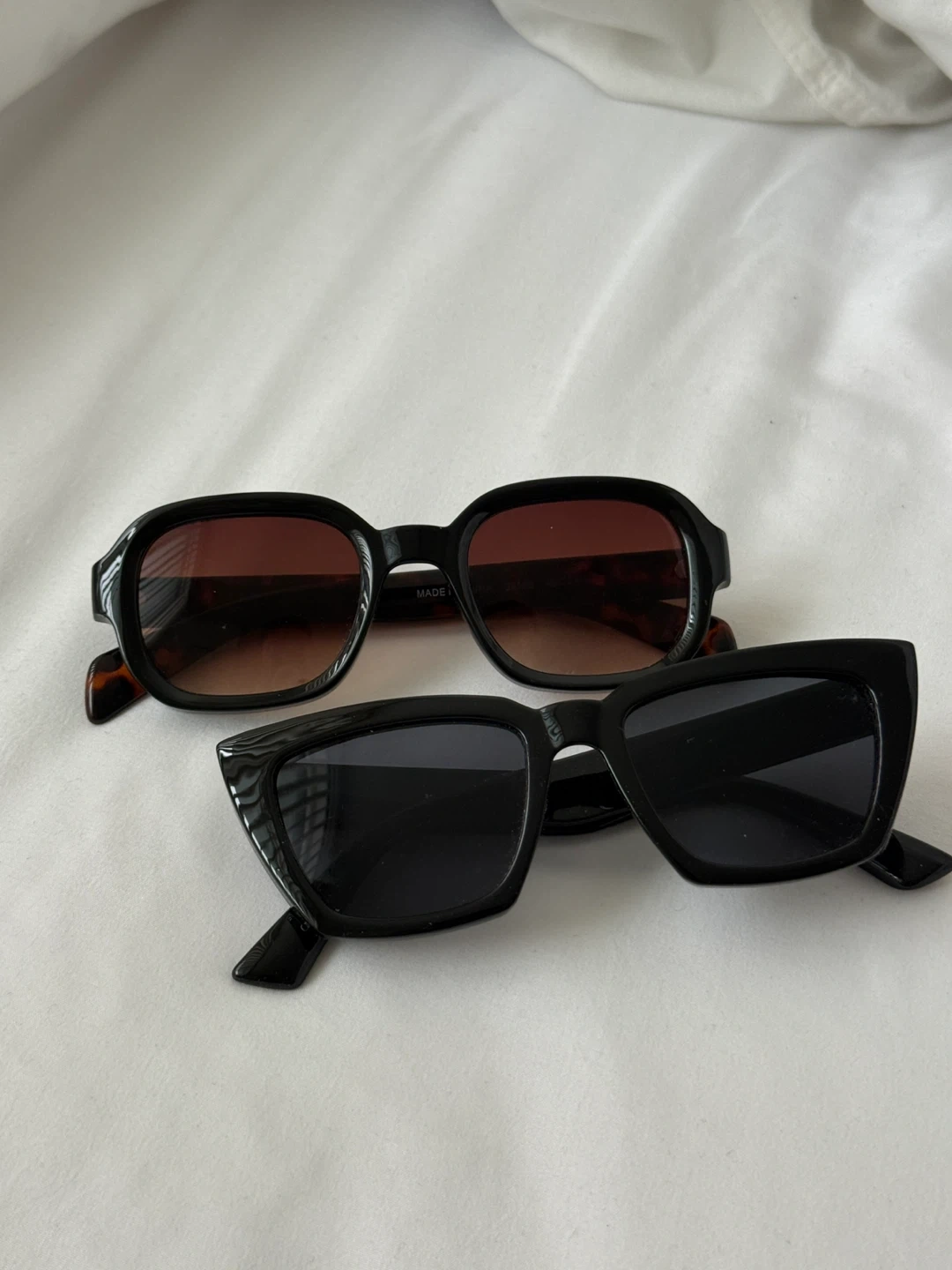 One pair is tortoiseshell with brown lenses, and the other is black with dark lenses. They offer filter cat.3 protection.