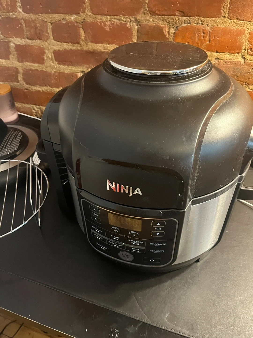 Ninja Foodi pressure cooker/air fryer combo. Like new condition. It can pressure cook, air fry, steam, slow cook, bake, dehydrate, etc. Originally $160. Pickup at 96th and Broadway. Venmo or Zelle.