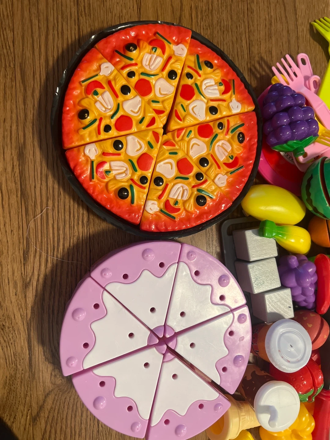 Kids Play Food Set with Pizza, Cake, Fruit, and Tea Set