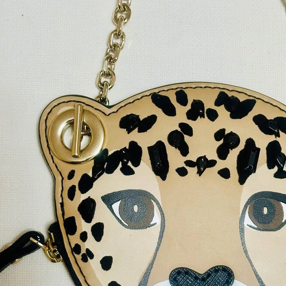 Kate Spade Woman's Leopard Wristlet Purse with Black Stones