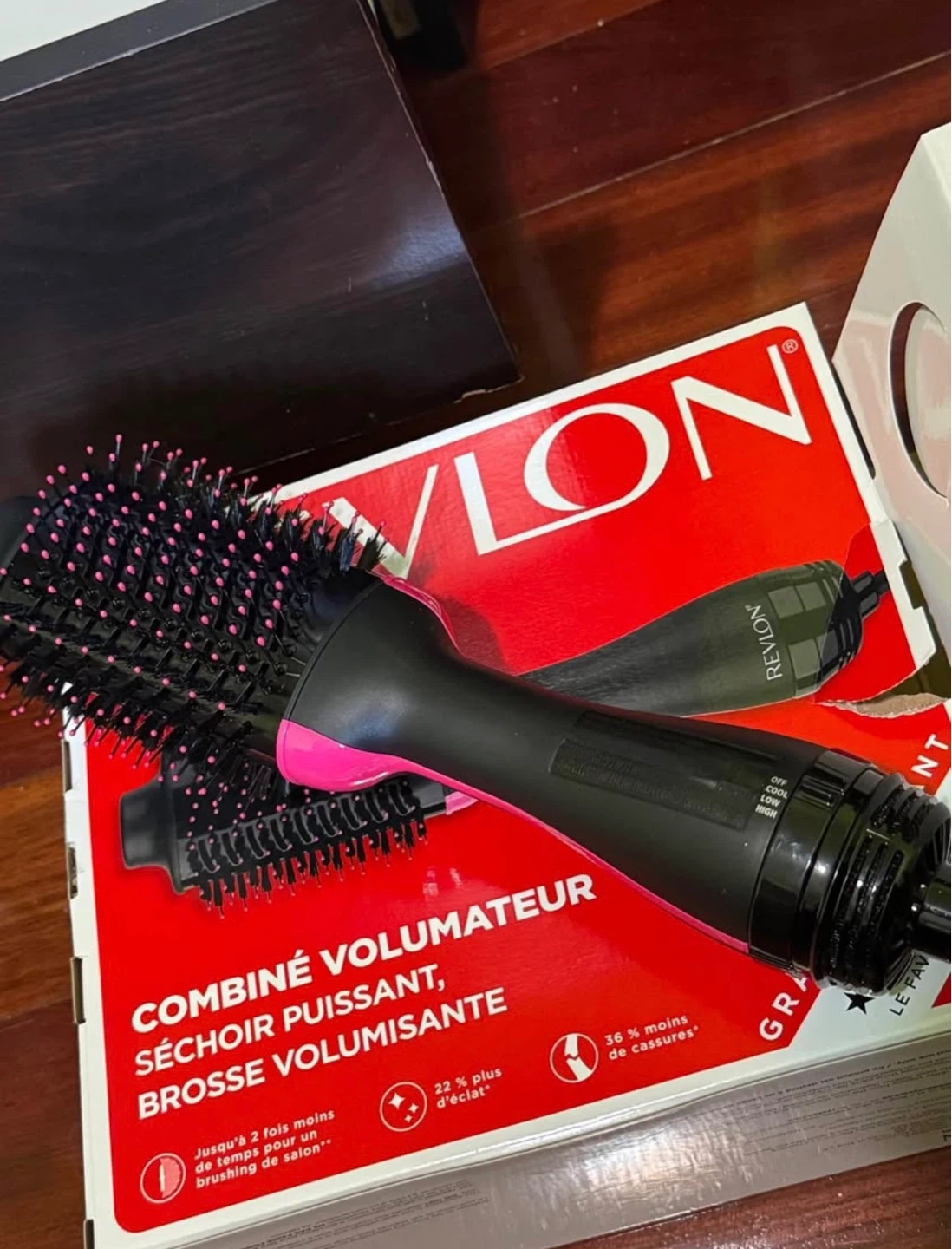 This Revlon hair dryer and volumizer is a powerful styling tool. It helps reduce frizz and static for smoother hair. It's designed to dry and style hair in one step! Box included