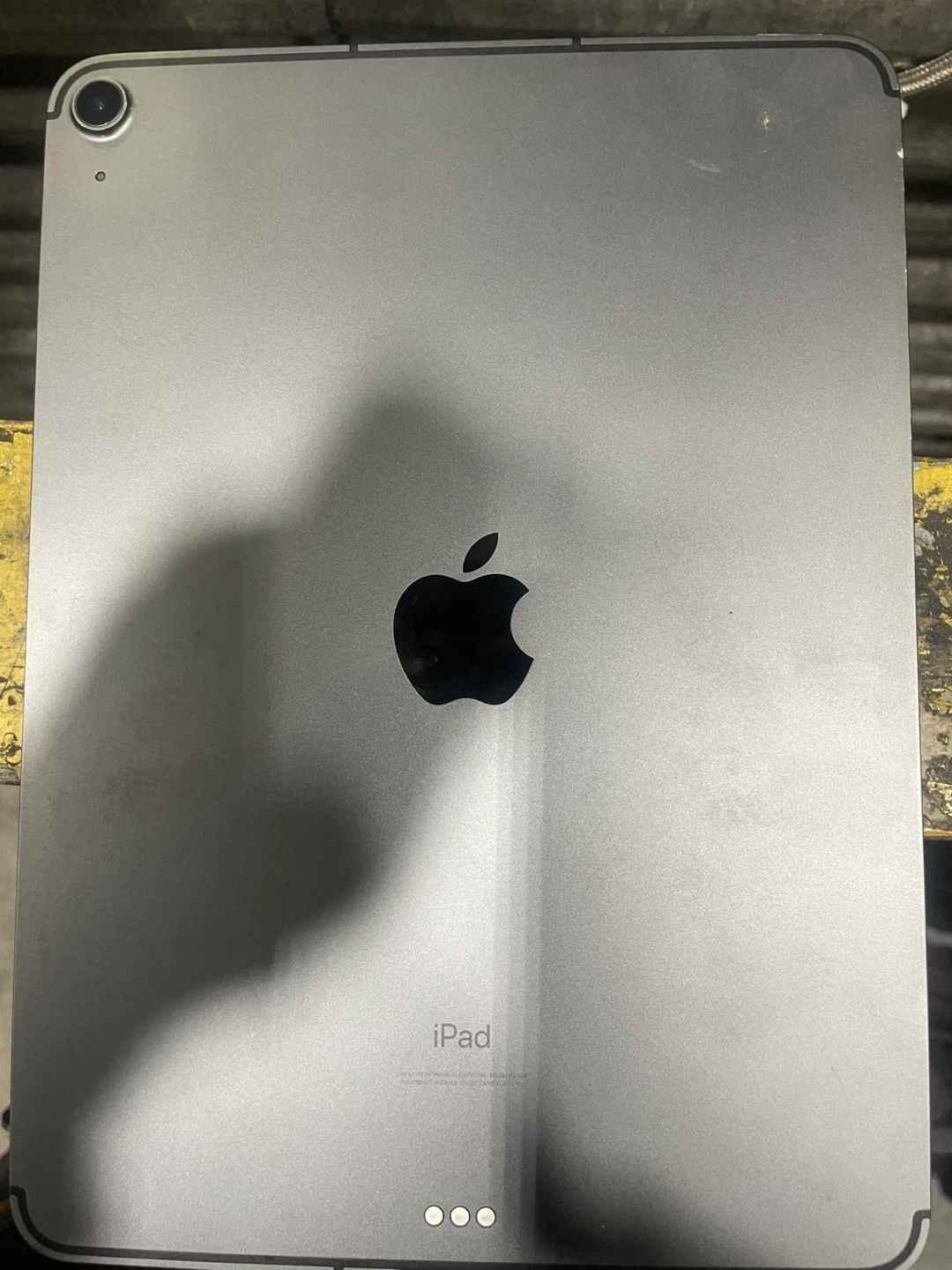 This is an Apple iPad Air, 4th generation. It features a 10.9-inch screen and 64GB of storage. This iPad is gray and includes a USB-C cable.