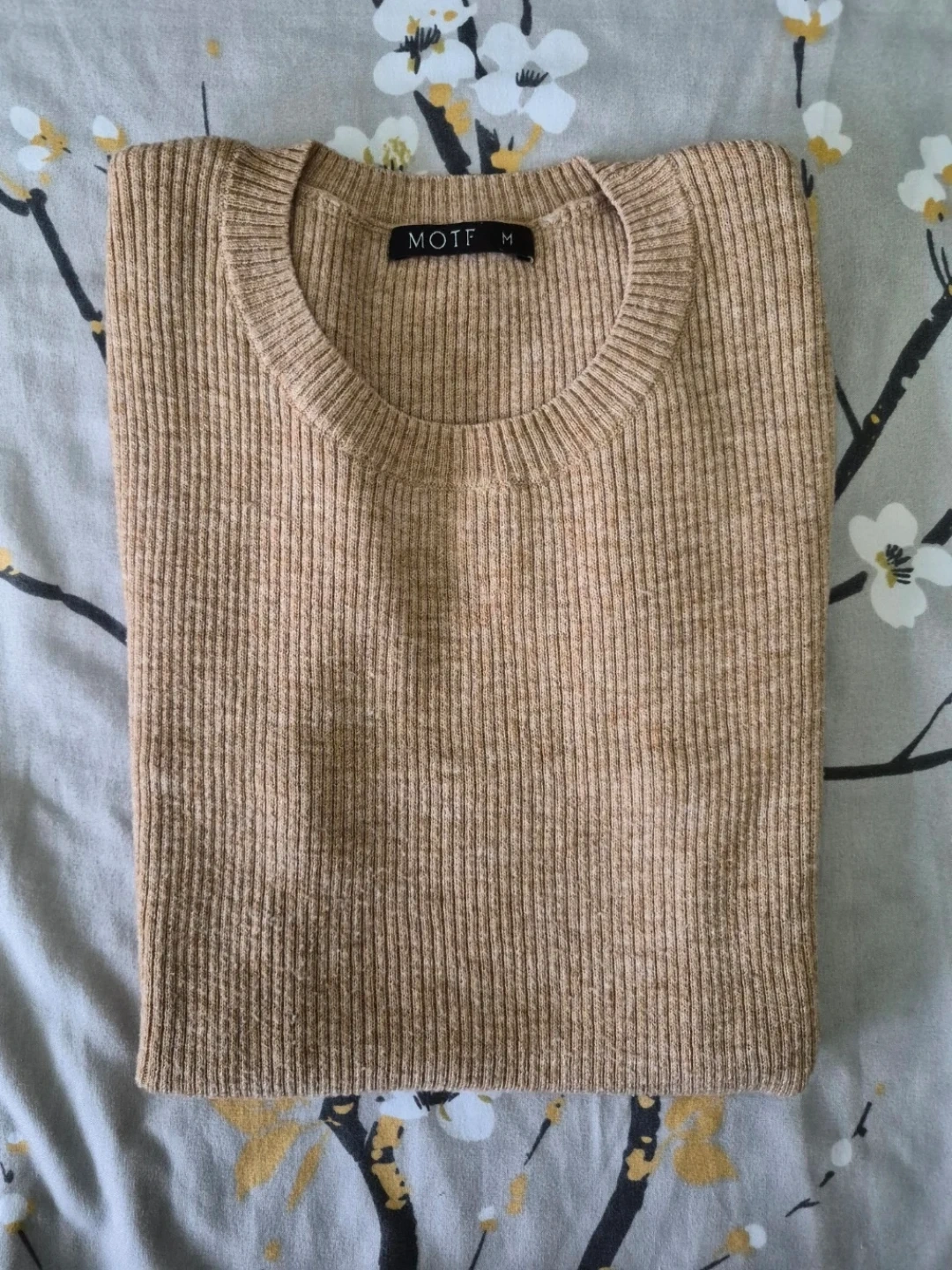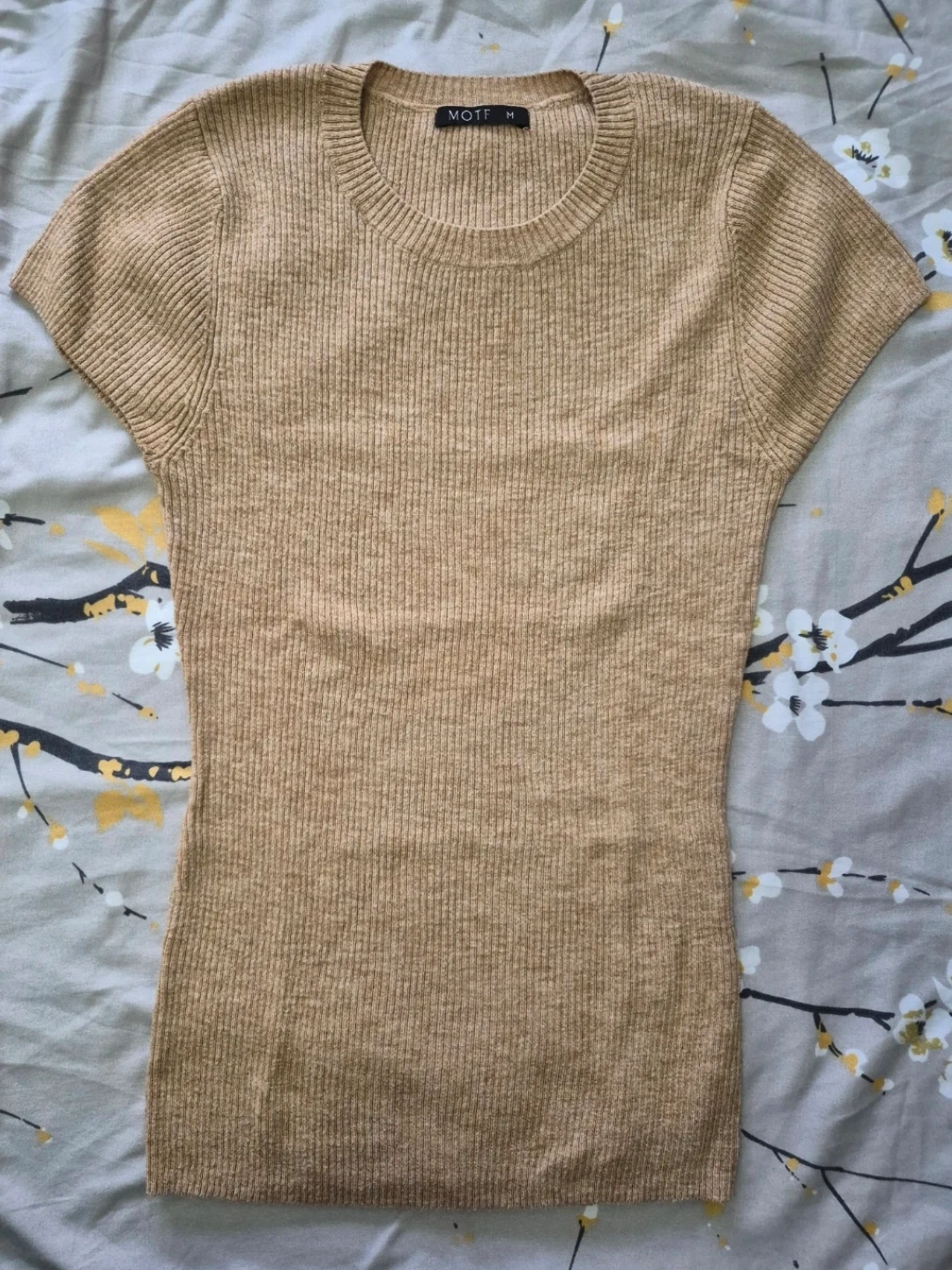 Selling a cute MOTF ribbed knit top in a lovely beige colour! It's a size medium and in great condition.