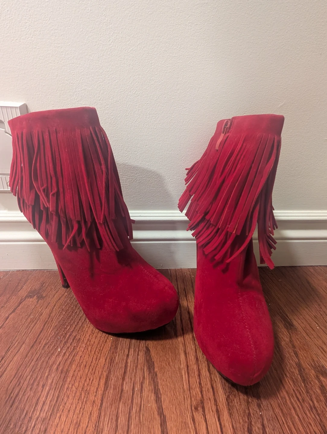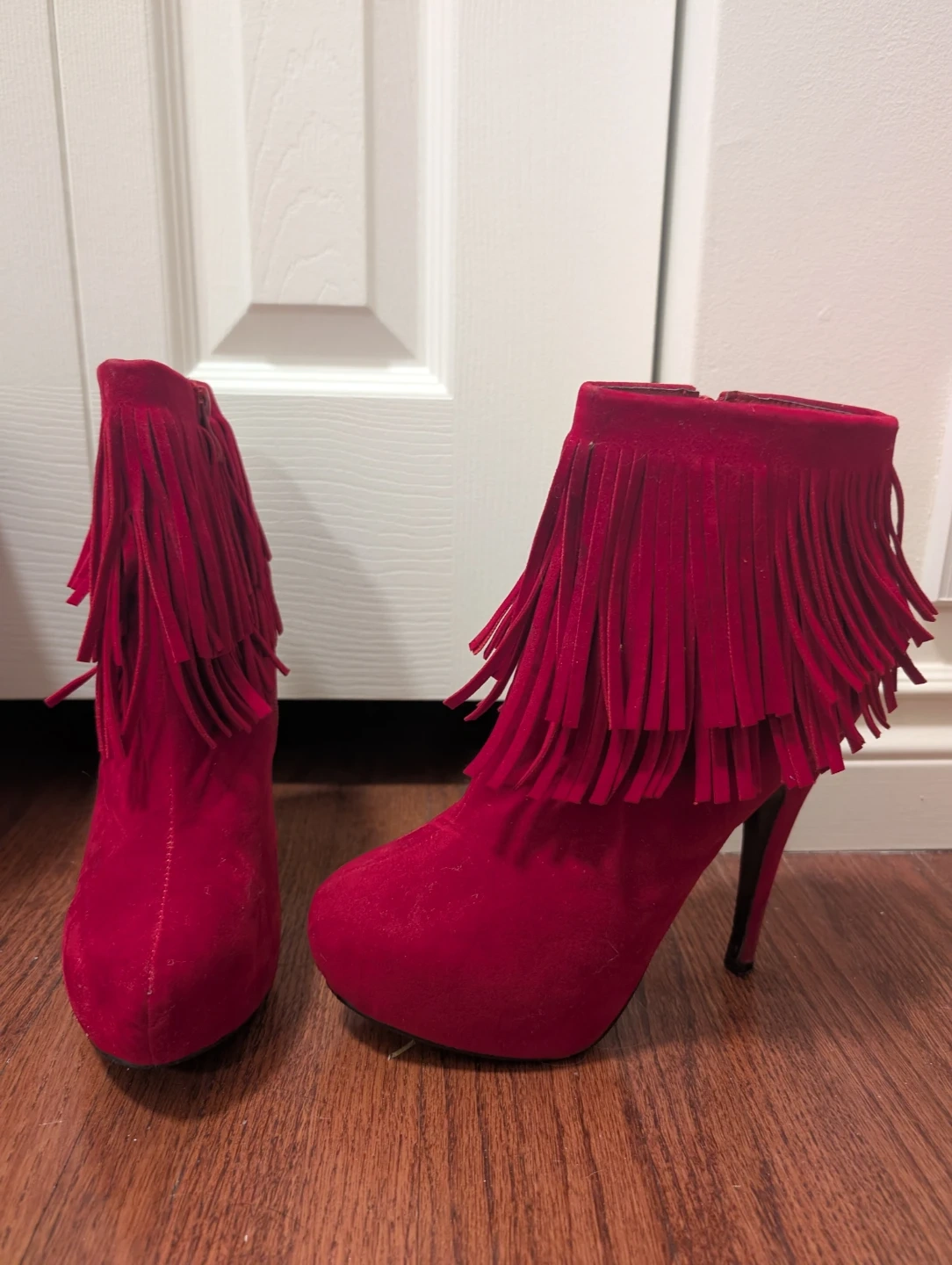 Delicacy Women's Red Fringed Ankle Boots Size 8.5