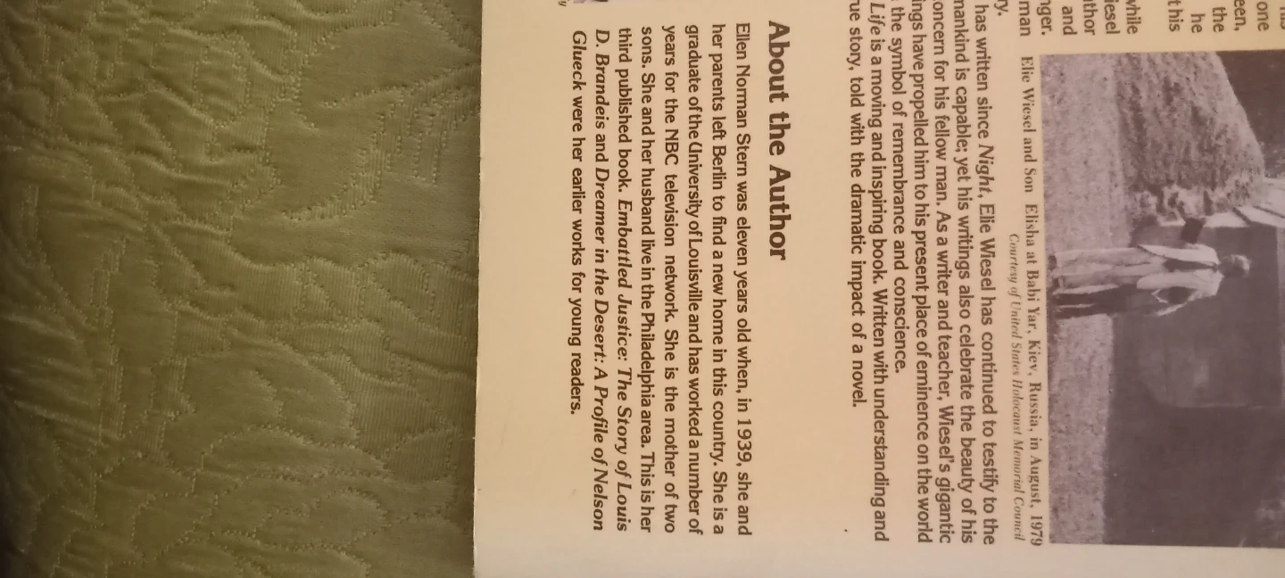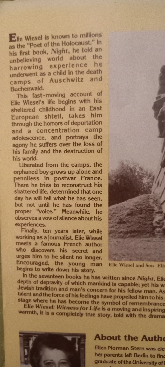 This book recounts the harrowing experiences of Elie Wiesel during the Holocaust. It details his liberation from concentration camps and his journey to find his voice. Written by Ellen Norman Stern, it's a moving and inspiring account.